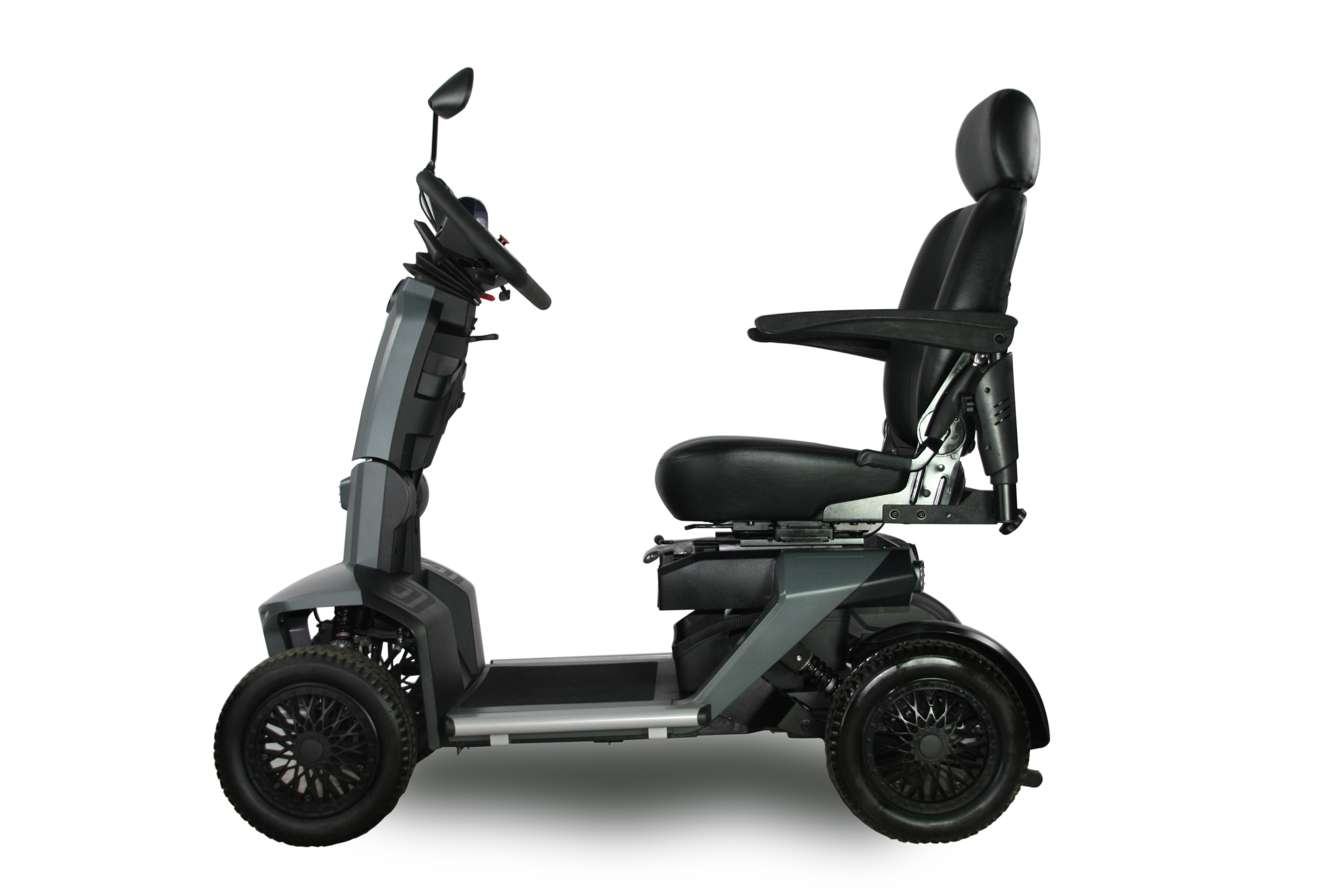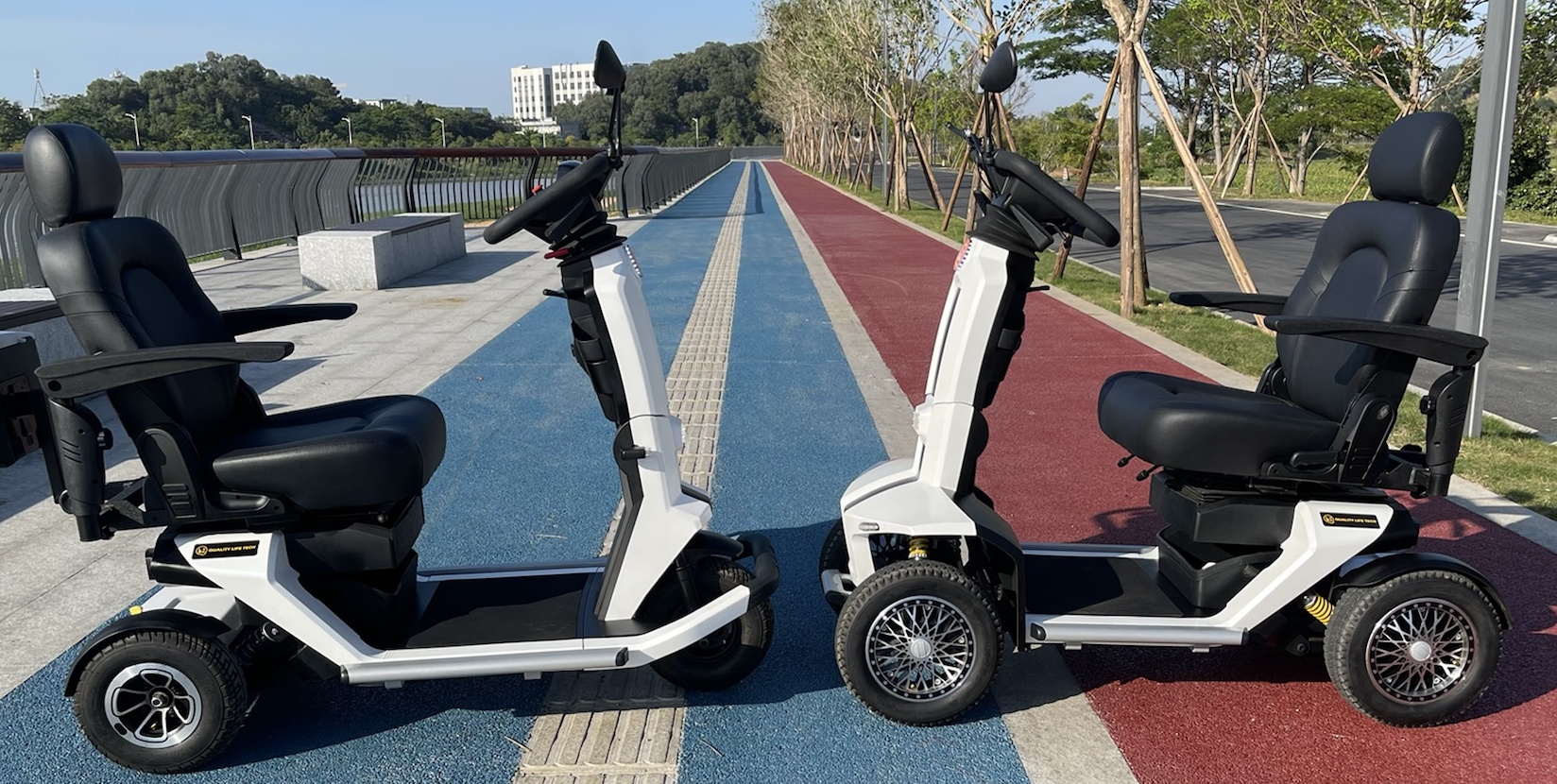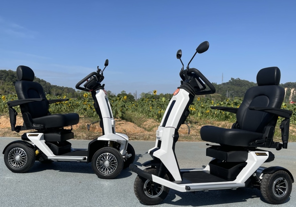 The Quality Life Technologies QS1231/1245 product family is the brand new designed and developed all-terrain out door electric mobility scooter basing on the domestic and overseas market demand and industry protential trends, which came out from the perspective of mobility aids industry and outside travel demands of senior citizens and disabled people from Quality Life’s marketing & RD department. The maximum user’s weight is 135 kg with maximum speed 15 kilo meters per hour, and 12 degrees maximum climbing slope. It comes with long-lasting maintain-free lithium iron phosphate battery which supports the driving range goes up to 60 kilo meters, and it desinged for long time, all-terrain, day and night out door using with ergonomic dash handle bar and throttle lever, tiller handle adjustments, seating system adjustments, full suspension and deluxe day and night lighting kit. The overall all new clean, modern, Cyber Deco styling looking solve the unfriendly, unhealthy looking essentially, give consumers a refreshing using experience and confidence whith cann’t be found in the traditional mobility scooter styling.