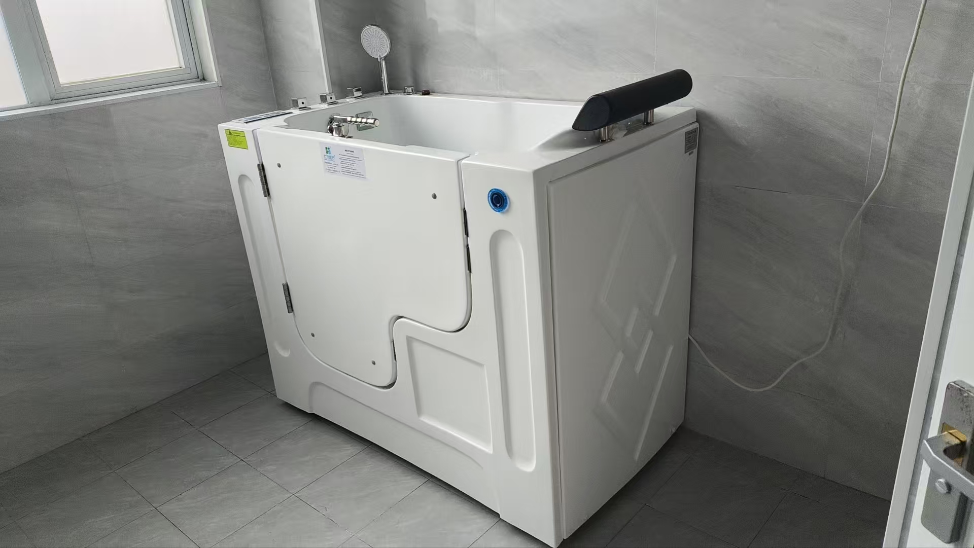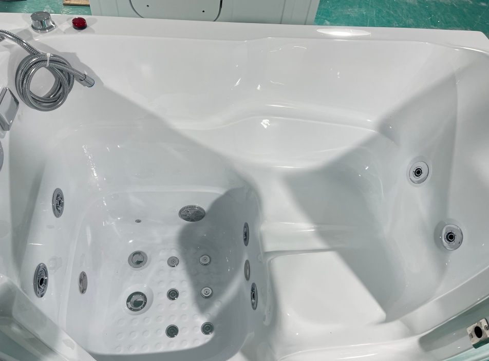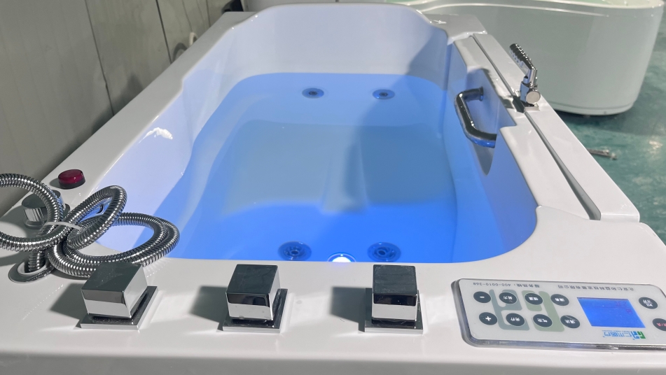 The RH-902 Barrier-free bath for the elderly features a 1300×750×1150mm openable design with a 304 stainless steel lock and low threshold entry/exit. Its formaldehyde-free acrylic tub offers 460L water capacity, 6 vortex jets + 60-hole bubble massage in three modes, and 32-point LED light therapy with temperature-sensitive color-changing alerts. The LCD touchscreen provides 30 preset warm-water prescriptions for one-touch adjustment, while Bluetooth music streaming and ozone disinfection (≤0.01 mg/m³) enhance comfort. With dual leakage protection and 220V/1.1kW operation, this CE-certified device is listed in China's National Rehabilitation Assistive Devices Catalog. Ideal for nursing homes, communities, and households, it delivers safe and comfortable rehabilitation hydrotherapy experiences for seniors with partial or complete mobility impairments.