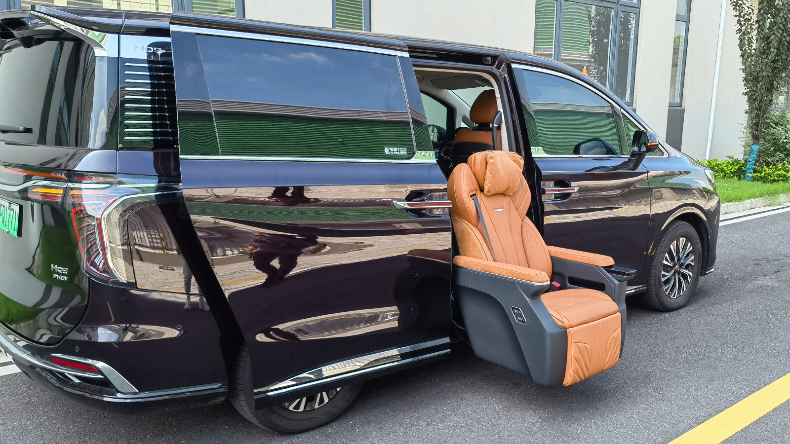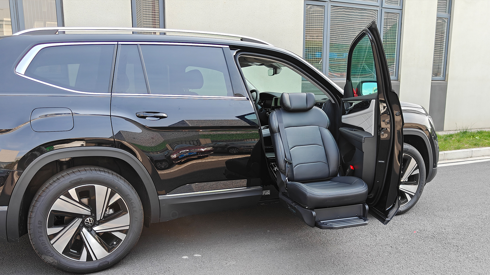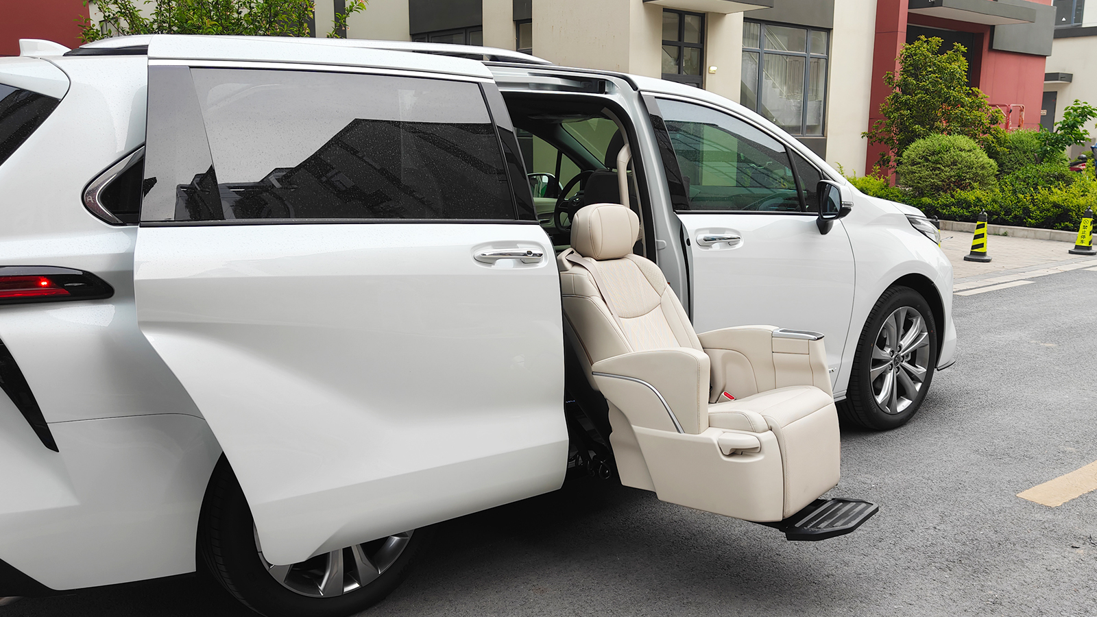 SLIFT Pro V2 swivel seat is a kind of welfare seat which can fitted onto SUV, MPV etc and help the older or the disabled to get seated safely, conveniently and comfortably.It can be matched and reformed in combination with original car seats even aviation seats. It is operated by wired remote control or your mobile phone. This seat is programmable by the wired remote control including programming the movement of lengthwise, rotation and seat backrest angle. Program function: The rotation path, forward and backward movement, seat back angle and seat lowering height can be programmed and set by the remote control. After the program is set, it can run automatically; the actions of each path can run synchronously; Door interlock function: When the door is closed, the seat can only move back and forth and retract, and cannot be turned out; the door icon is displayed on remote control; Sleep function: When the door is closed for 10s, the seat will enter sleep mode automatically with a low quiescent current. it can be woken up by the remote control Manual emergency function: In the case of electrical damage or power failure, the seat can be retracted manually for emergency Control by cellphone:The seat can be connected to cellphone by Bluetooth and controlled by APP. CAN function customization is available; Pass GB15083 impact test; Equipped with GAC Trumpchi M8 aviation seat, pass the impact test, belt pulling force test, CCC test;