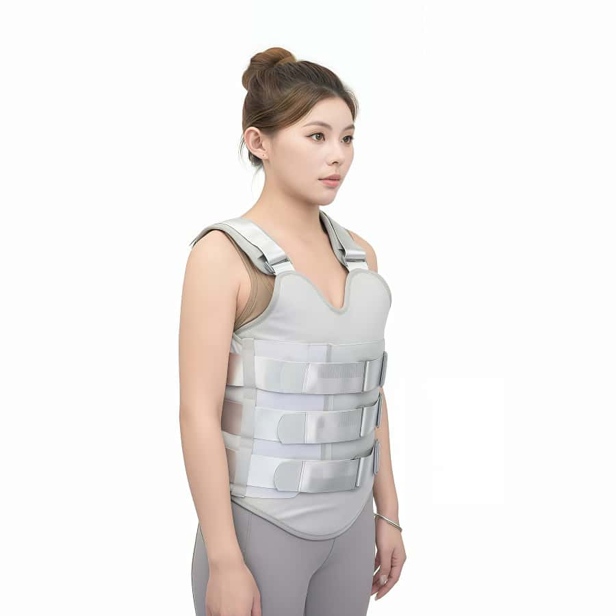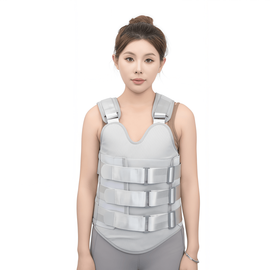 Indications: Postoperative thoracic/lumbar spine care, compression fratures,degenerative lumbar disc herniation. Features: 1.Lightweight polymer thermoplastic panels for enhanced comfort. 2.Embedded air cushion system ergonomically contours to spinal curvature. 3.Adjustable tension and sizing accommodates diverse anthropometrice. 4.Mesh ventilated fabric.