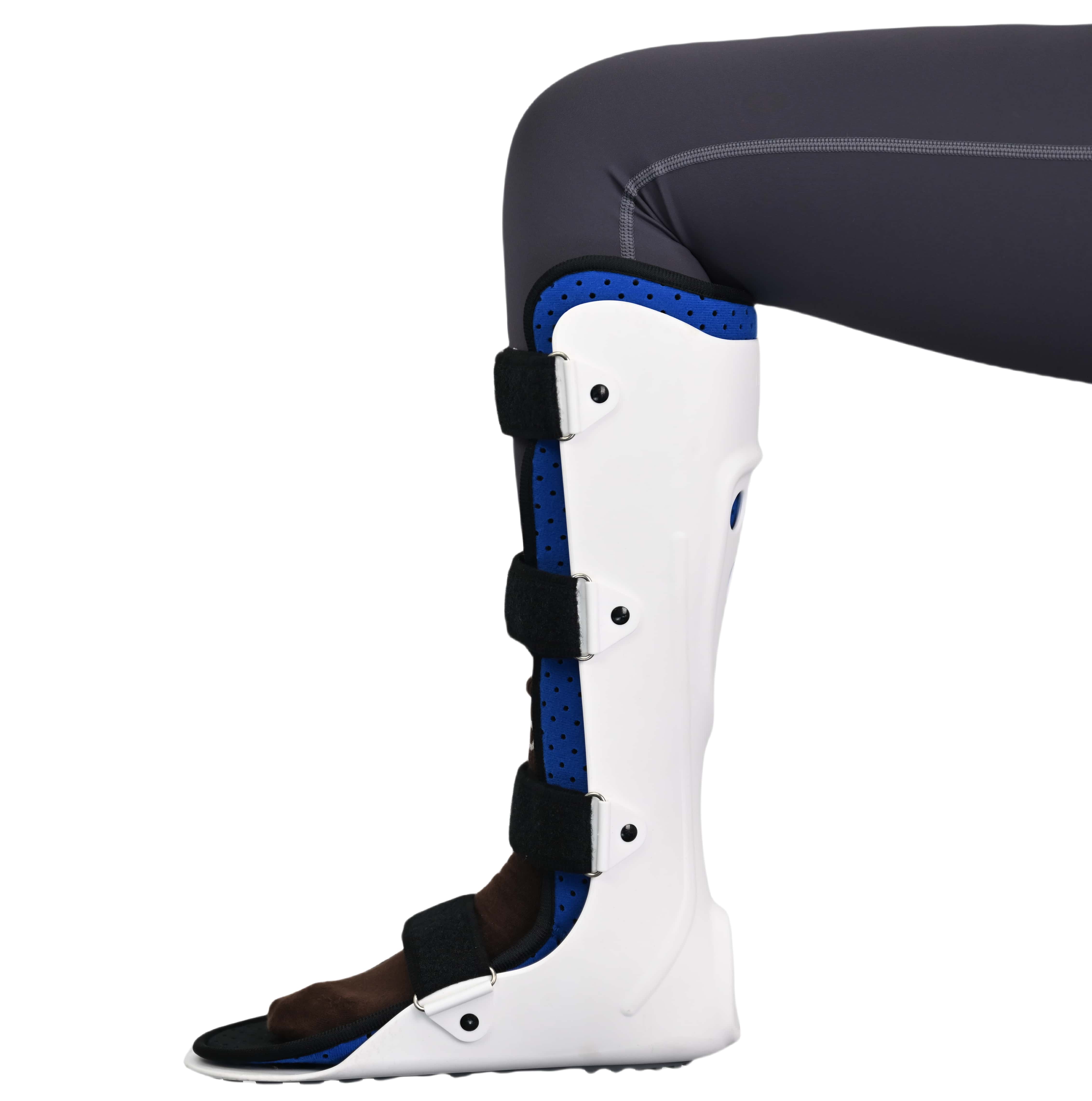 Indications: Ankle fracture, immobilization for ankle joint injuries, ligament fixation following achilles tendon rupure, varus/valgus deformity correction with rehabilitation bracing. Features: 1.Double-layer reinforced protective plate,detachable. 2.Dual perforation design enhances breathability and prevents stuffiness. 3.Open-structure hook&loop fasteners for easy wearing. 4.Upgraded non-slip shock absorbing sole.