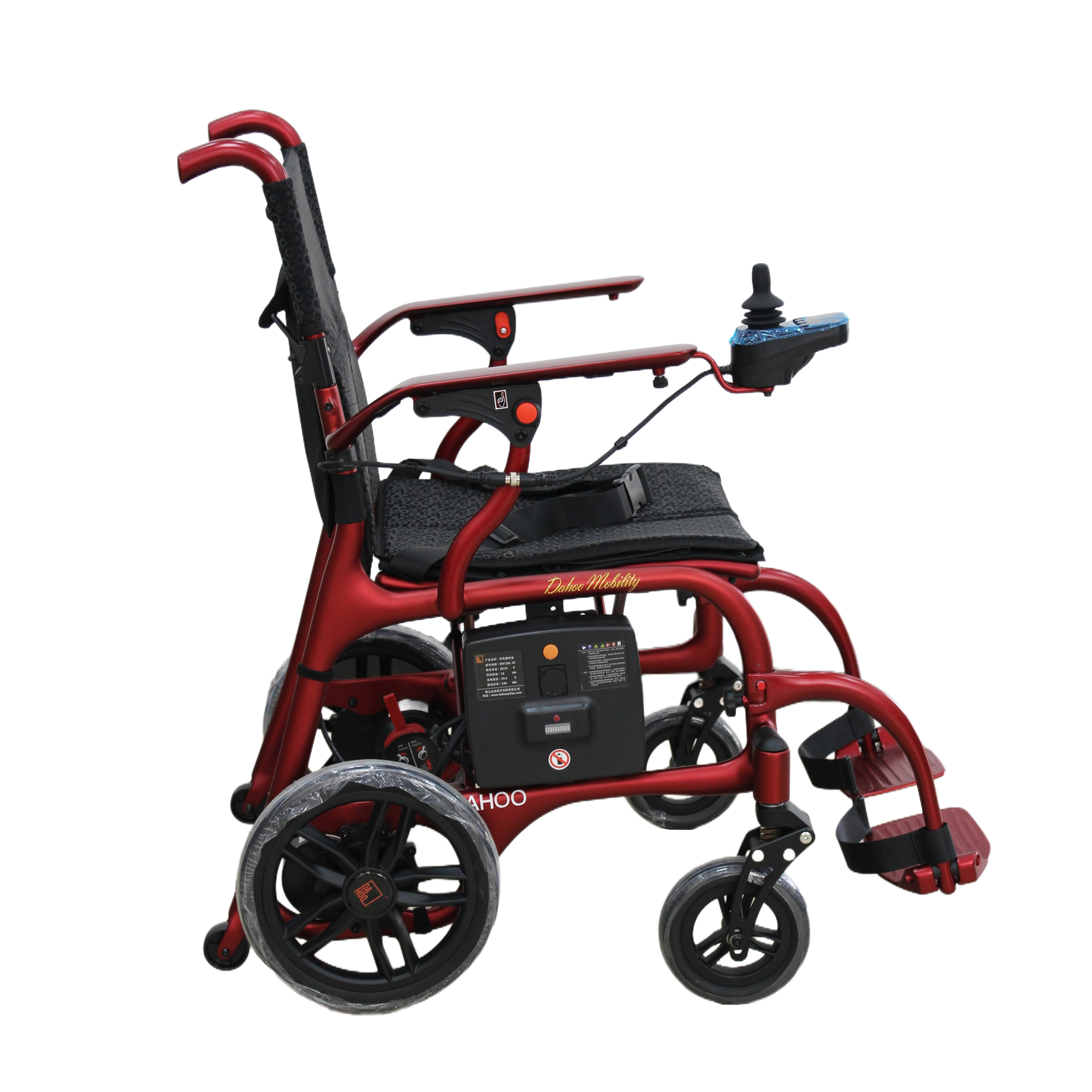 The entire unit is made of high-strength carbon fiber with a 2mm wall thickness, formed in one piece, making it lightweight and easy to carry. The carbon fiber's natural texture is paired with a glossy paint finish, providing corrosion and oxidation resistance. The foldable frame with an I-shaped cross structure, combined with the ergonomically designed seat cushion, ensures comfort even during long periods of sitting. The rear-flipping armrests and quick-release footrest enhance convenience. The seat and back cushions are made of high-strength nylon fabric plus mesh cloth, with built-in canvas reinforcement, achieving a tensile strength of 5000N, offering softness and breathability. Both front and rear wheels are equipped with magnesium alloy hubs, PU tires, and shock absorption. The 150W brushless motor with electromagnetic braking delivers strong power while being energy-efficient. It supports one-key switching between electric and manual modes, comes with a speed display and low-battery braking function, ensuring safety and convenience.