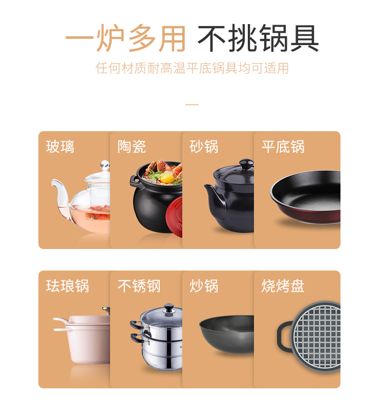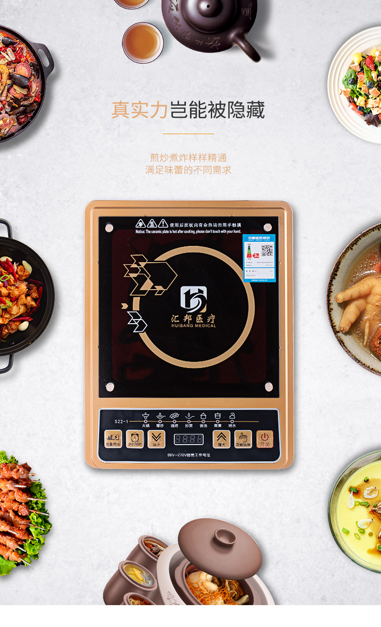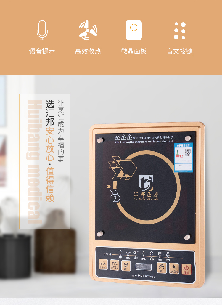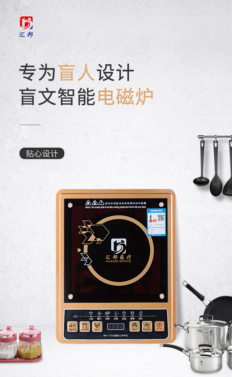 每一個(gè)操作按鍵都具有語(yǔ)音報(bào)讀功能和盲文點(diǎn)標(biāo)識(shí);具有“無(wú)鍋具”的安全提醒。反復(fù)提醒無(wú)鍋具后自動(dòng)斷電關(guān)機(jī),安全保護(hù);具有6個(gè)操作按鍵:功能選擇鍵、減小鍵、增大鍵、開(kāi)關(guān)鍵、定時(shí)預(yù)約鍵、電量電壓查詢鍵;具有火鍋、爆炒、燒烤、炒菜、煲湯、蒸煮、燒水、預(yù)約、定時(shí)九大功能,增大、縮小鍵可讀報(bào)相應(yīng)溫度數(shù)。