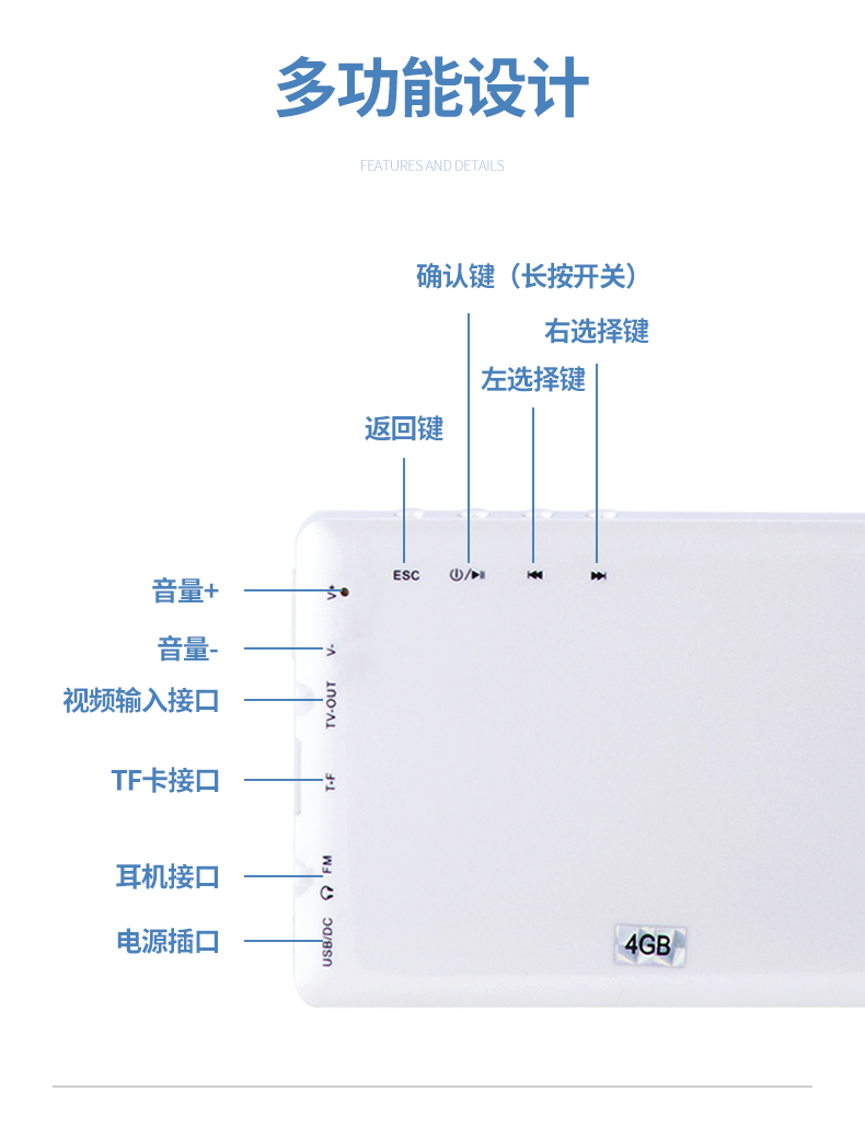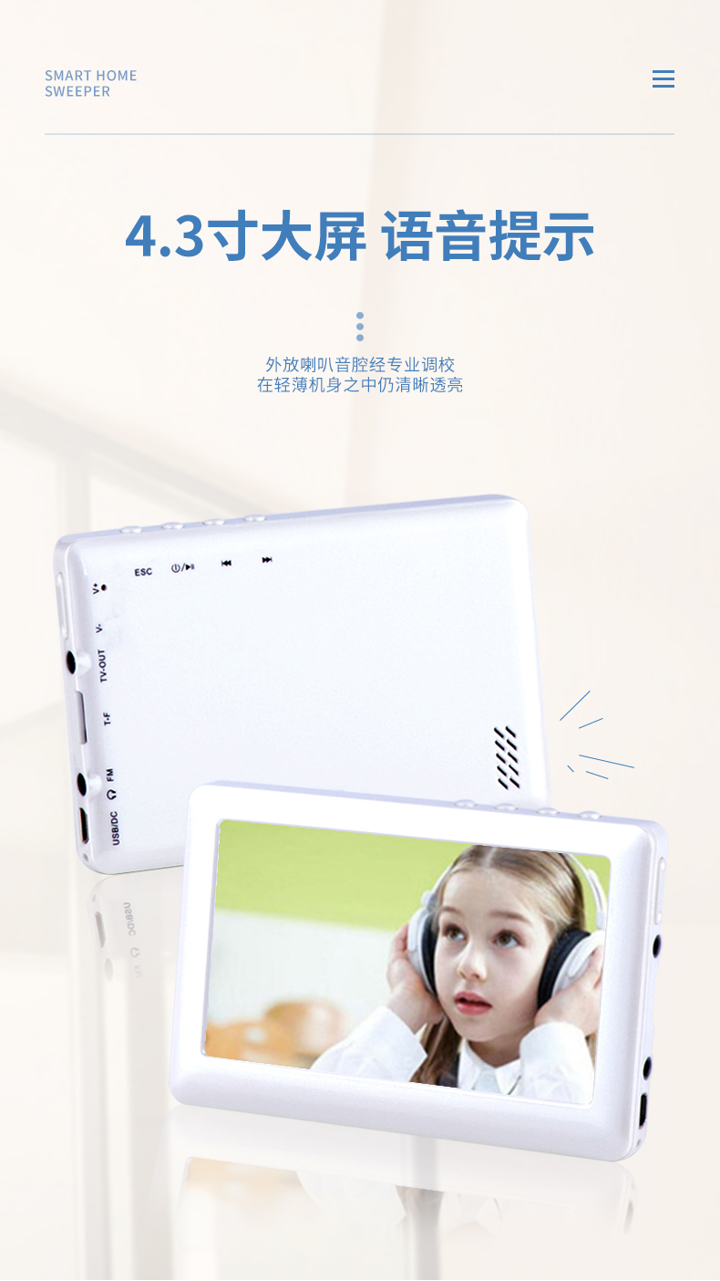 屏幕尺寸≥4.2寸;每一步操作都可以實(shí)現(xiàn)步步語音提示;具有視頻/音頻/收音機(jī)/電子書功能。