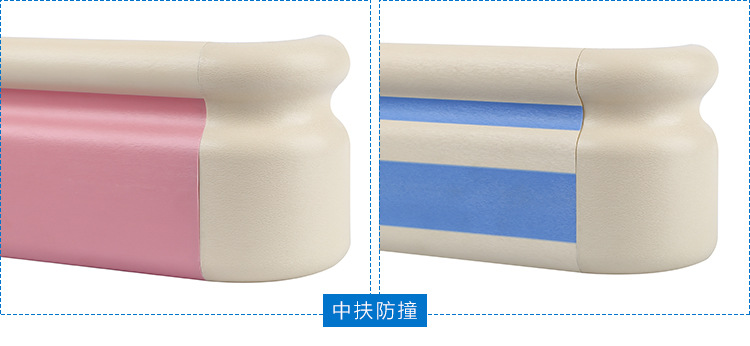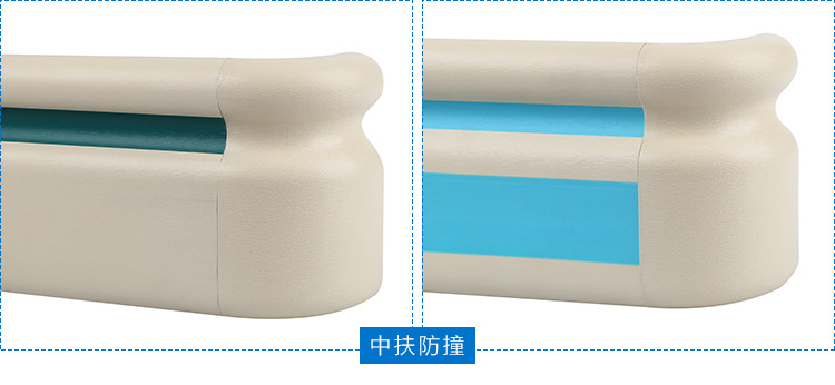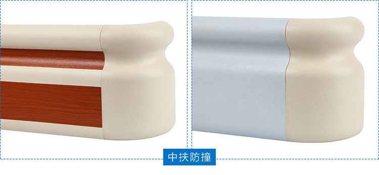 抗菌防撞扶手由抗菌PVC面板、優(yōu)質(zhì)鋁合金內(nèi)襯、彎頭、支撐架等組成;設(shè)計符合人體力學的要求,手握時有舒適感;表面PVC面板采用高分子抗菌材料,有防滑紋路,可抗菌、防污、不易變色,便于清潔,具有抗菌性、阻燃性、耐寒性等特性,產(chǎn)品經(jīng)國家權(quán)威機構(gòu)檢驗合格;整體色澤均勻,無明顯色差;扶手內(nèi)襯鋁型材,采用優(yōu)質(zhì)的鋁錠擠出成型,有堅固和防撞效果;扶手在每個轉(zhuǎn)角處有陰陽角連接配合,可使扶手的美觀無縫連接及保護墻面。