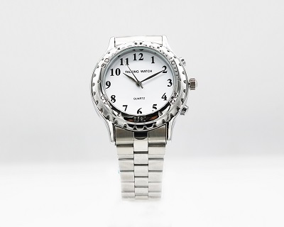 .材質(zhì):1)表殼采用不銹鋼 ;2)表帶采用鋼制;3)表蓋采用石英玻璃。 功能:1)具有語音報時功能,可播報當前時間;2)具有整點報時功能;3)具有鬧鈴及貪睡功能。 適用于 一/二級盲和全盲人群。