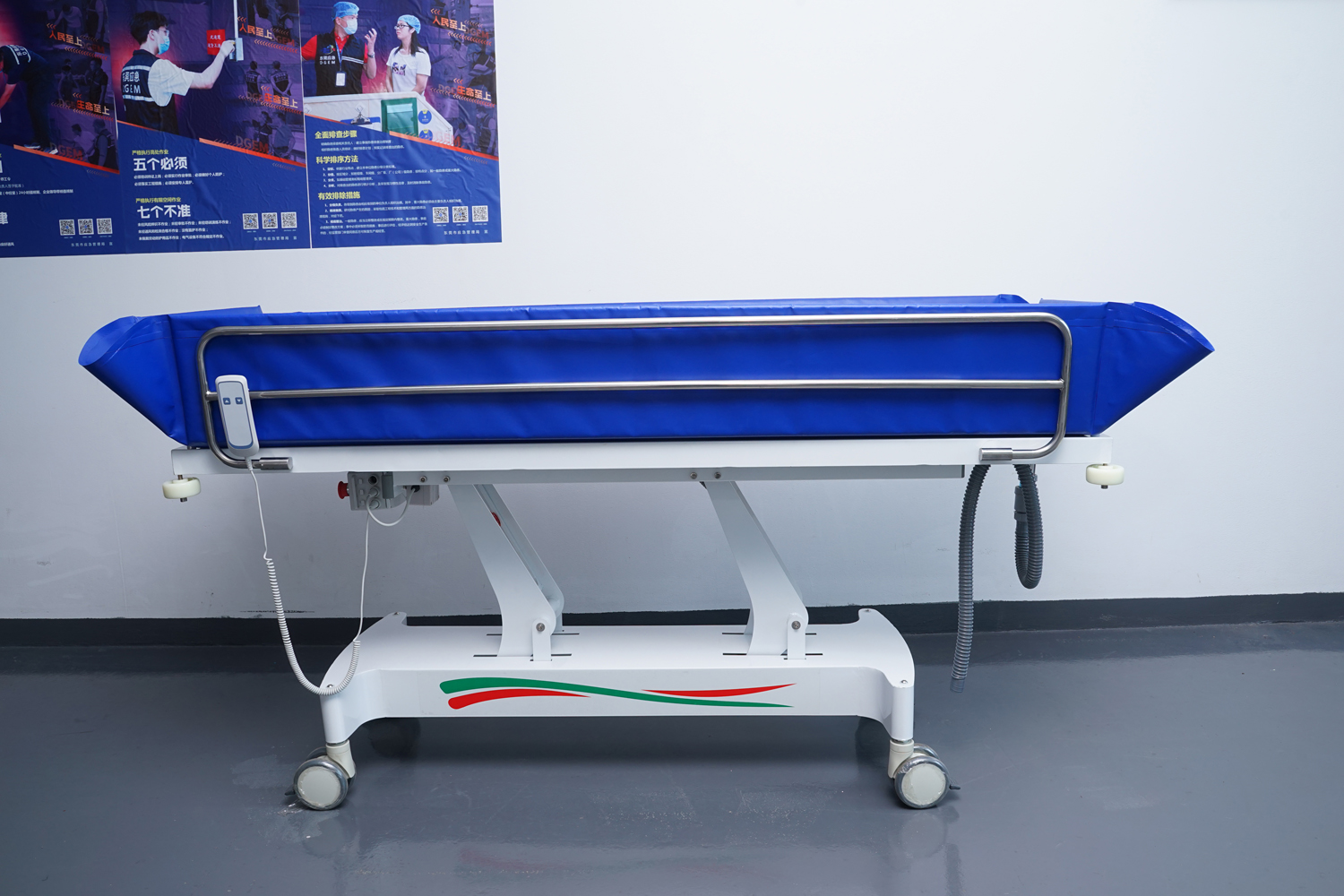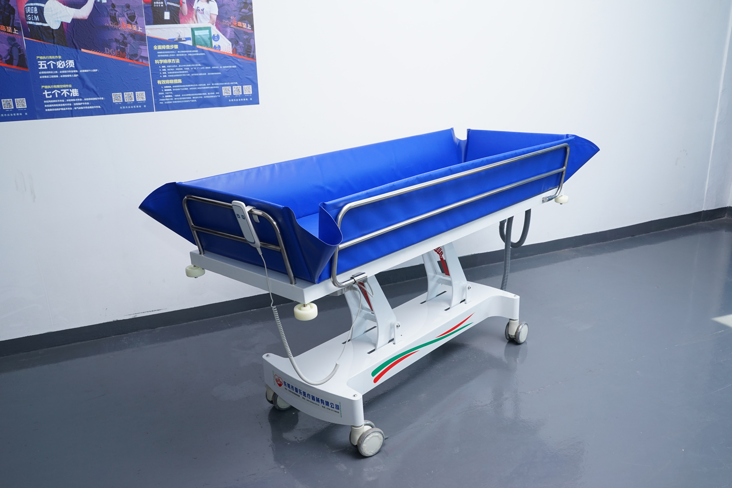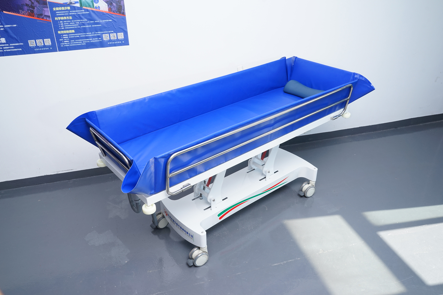 1 功能 采用進口24V/800KG推力特種防水電機,平穩(wěn)整體升降。電源為24V/4.4AH高效節(jié)能環(huán)保電池。護工操作簡單,調節(jié)到浴者舒適體位。 2 床體 床 架:高級304#不銹鋼、冷板、冷管; 連接件、緊固件、旋轉件:304不銹鋼材質; 表處理:整體表面戶外防水烤漆處理;(冬天觸摸床體不冰涼) 防 護:床體四角均安裝3寸防撞輪。 3 規(guī)格參數 浴 槽:采用高韌性環(huán)保皮劃艇料