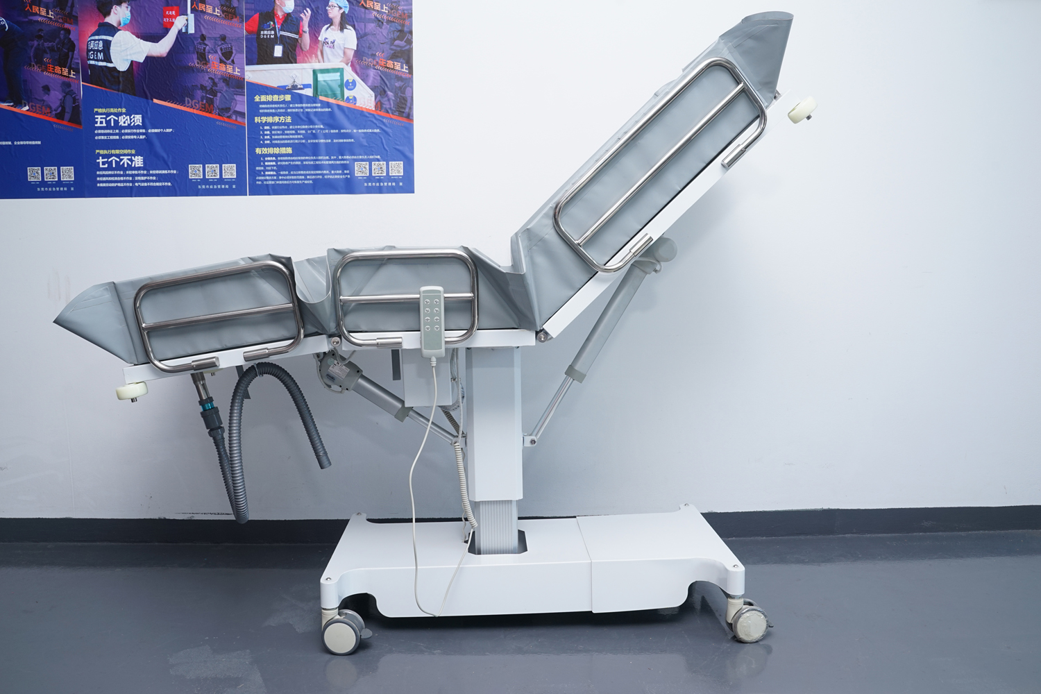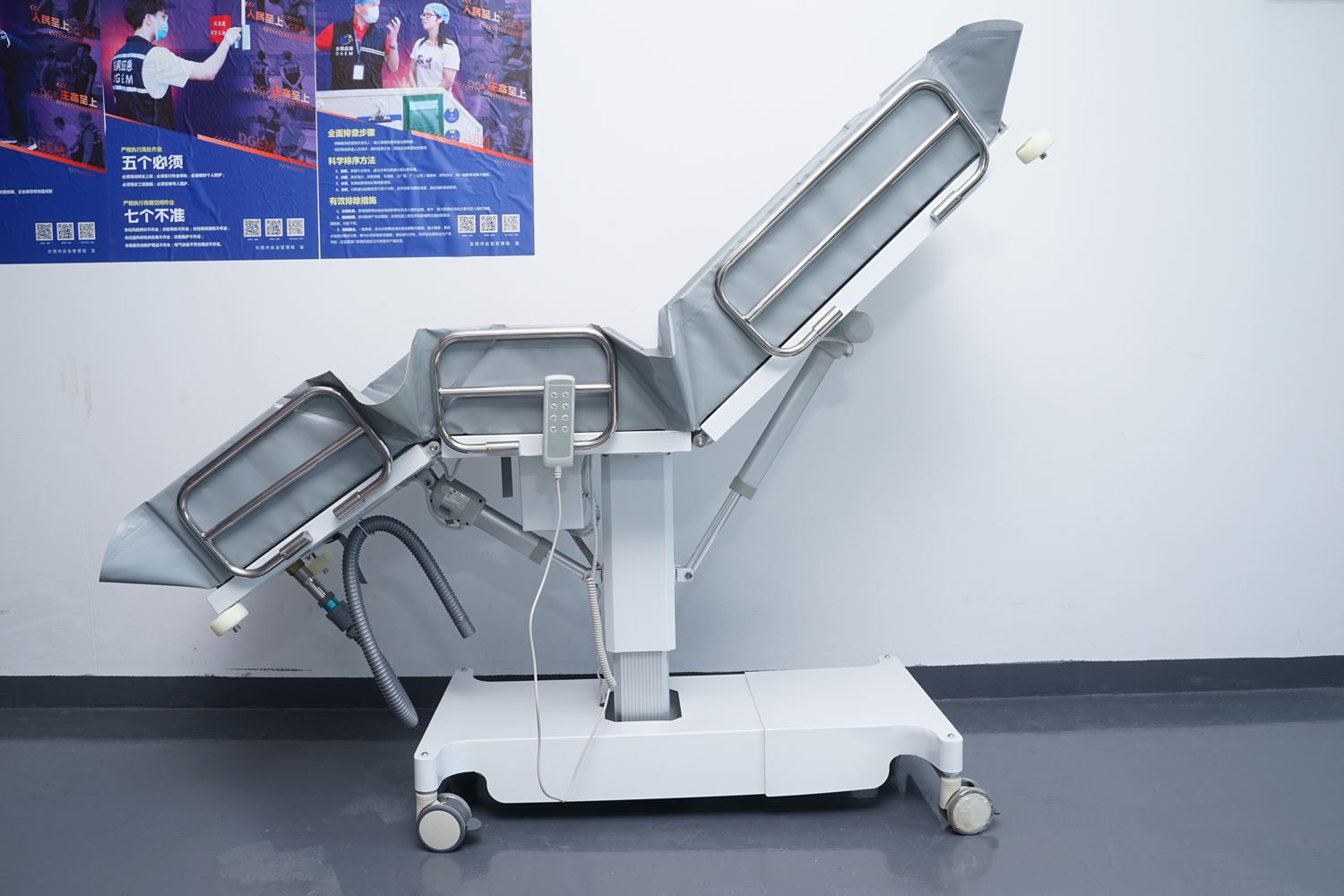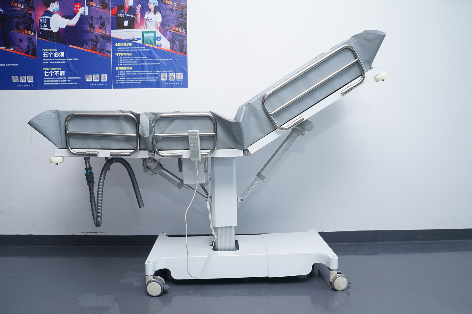 床體電動(dòng)三折折疊,電動(dòng)整體獨(dú)立升降調(diào)節(jié),靠背、腿部各自獨(dú)立電動(dòng)調(diào)節(jié) 可攤開可收縮折疊行走,便于狹小走廊行走及狹小空間洗浴等 電機(jī)功率3*6000-8000N,全部鋰電池24V安全電壓供電,防護(hù)等級(jí):IP54。 配備舒適安全帶,保護(hù)在洗浴及轉(zhuǎn)運(yùn)是浴者安全。 靠背、腿部可根據(jù)浴者舒適度隨意0°--80°調(diào)節(jié)。 護(hù)工操作簡單,調(diào)節(jié)到浴者舒適體位。 框 架:冷板、冷管;