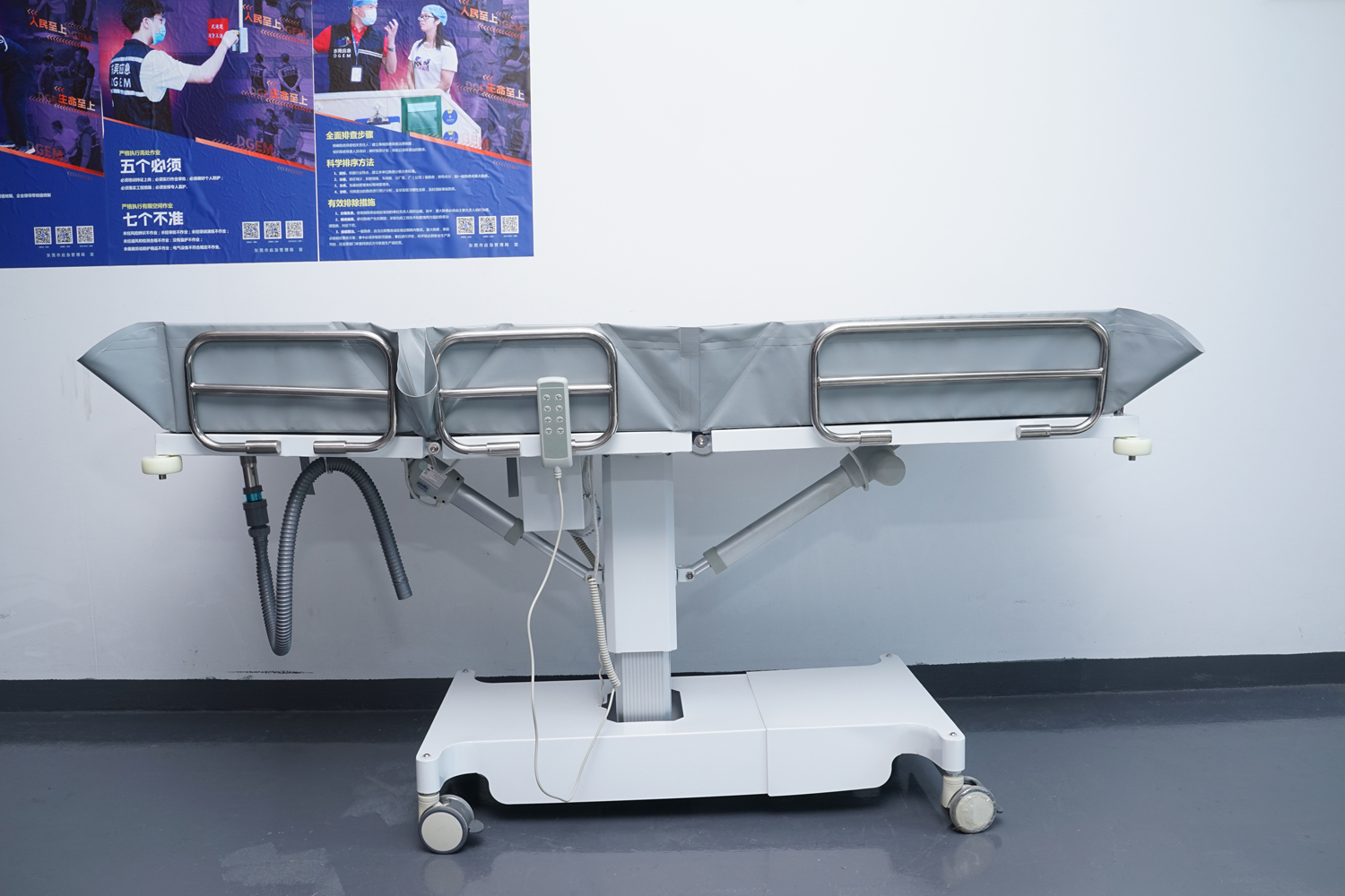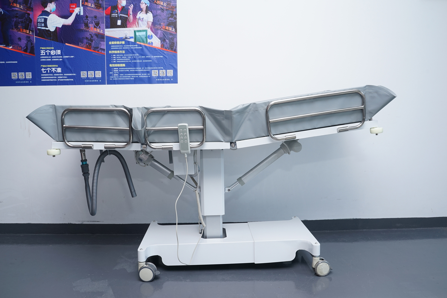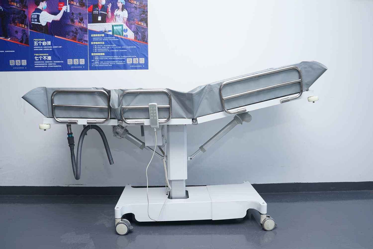 床體電動(dòng)三折折疊,電動(dòng)整體獨(dú)立升降調(diào)節(jié),靠背、腿部各自獨(dú)立電動(dòng)調(diào)節(jié) 可攤開可收縮折疊行走,便于狹小走廊行走及狹小空間洗浴等 電機(jī)功率3*6000-8000N,全部鋰電池24V安全電壓供電,防護(hù)等級(jí):IP54。 配備舒適安全帶,保護(hù)在洗浴及轉(zhuǎn)運(yùn)是浴者安全。 靠背、腿部可根據(jù)浴者舒適度隨意0°--80°調(diào)節(jié)。 護(hù)工操作簡單,調(diào)節(jié)到浴者舒適體位。 框 架:冷板、冷管;