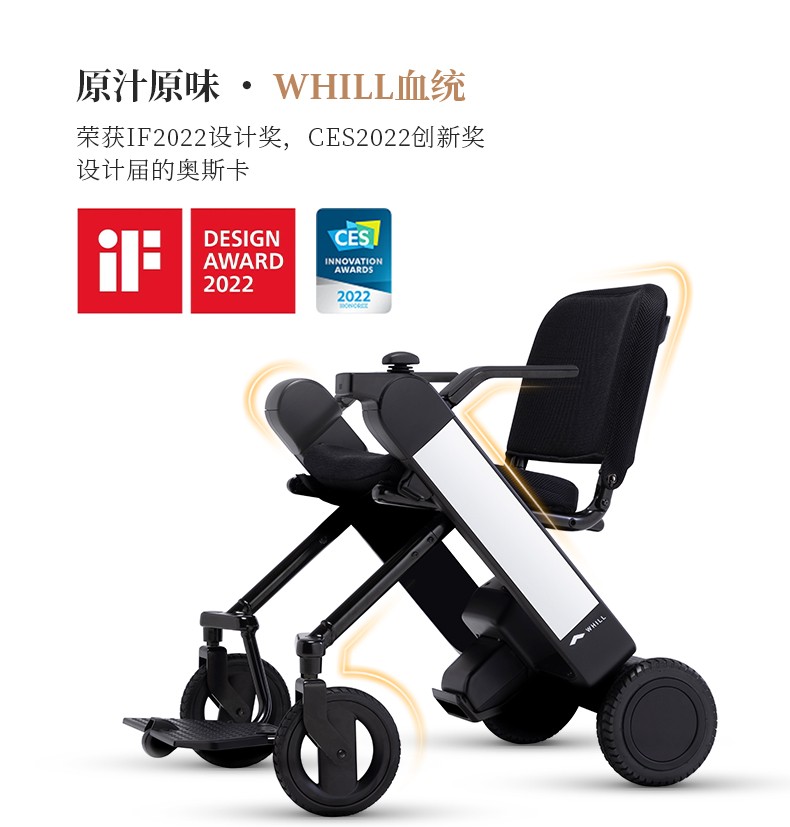Whill(蔚爾)的使命,為所有人的出行帶來創(chuàng)新和快樂。2009年誕生第一款概念機(jī),2012年WHILL公司在日本建立,經(jīng)過12年,如今有了MODEL F和C2兩款智能代步車。MODEL F去年6月上市,輕便可折疊適應(yīng)目前市場所需。配有日本尼得科無刷雙電機(jī),動(dòng)力強(qiáng)勁輸出穩(wěn)定。可以APP遙控,解放駕駛者的雙手。