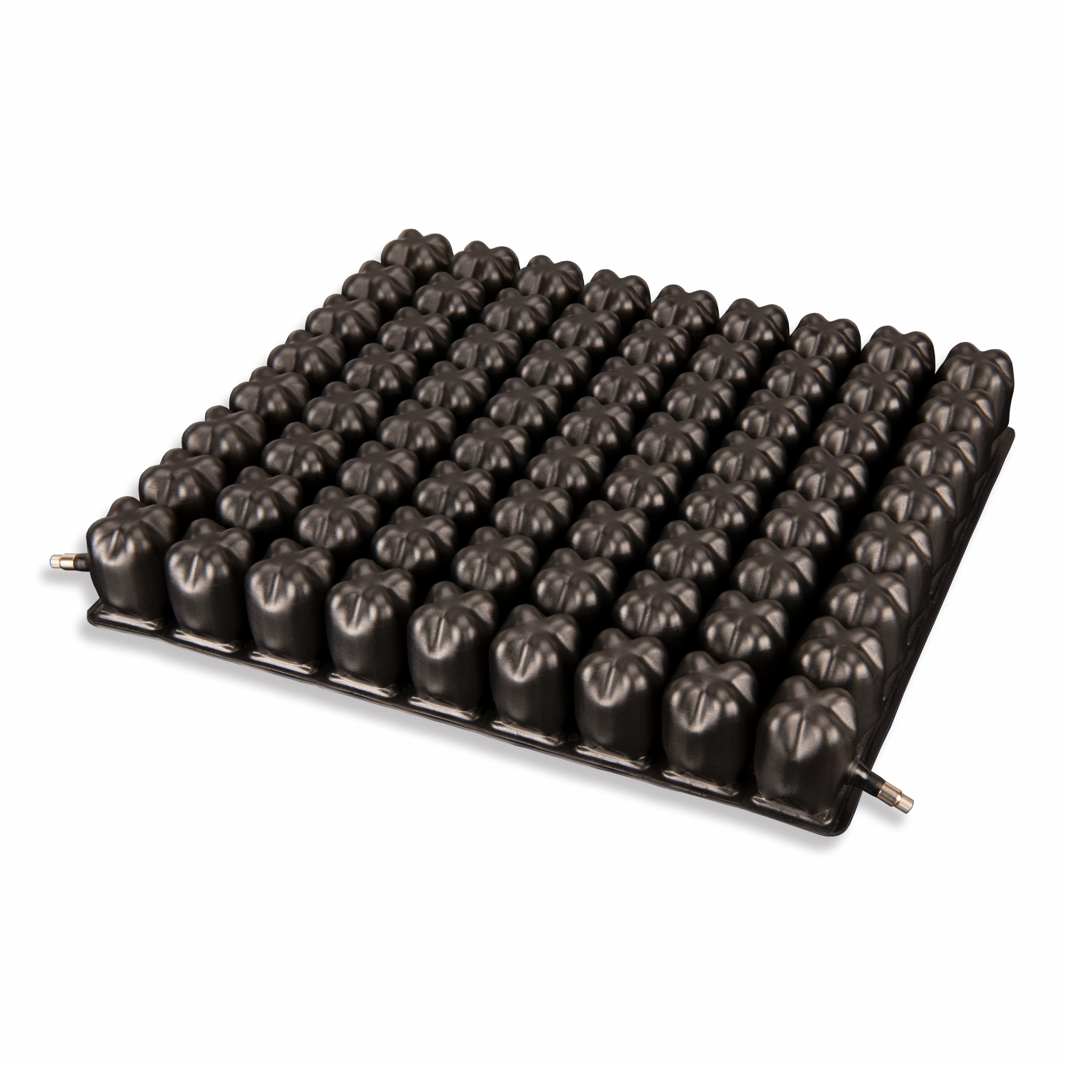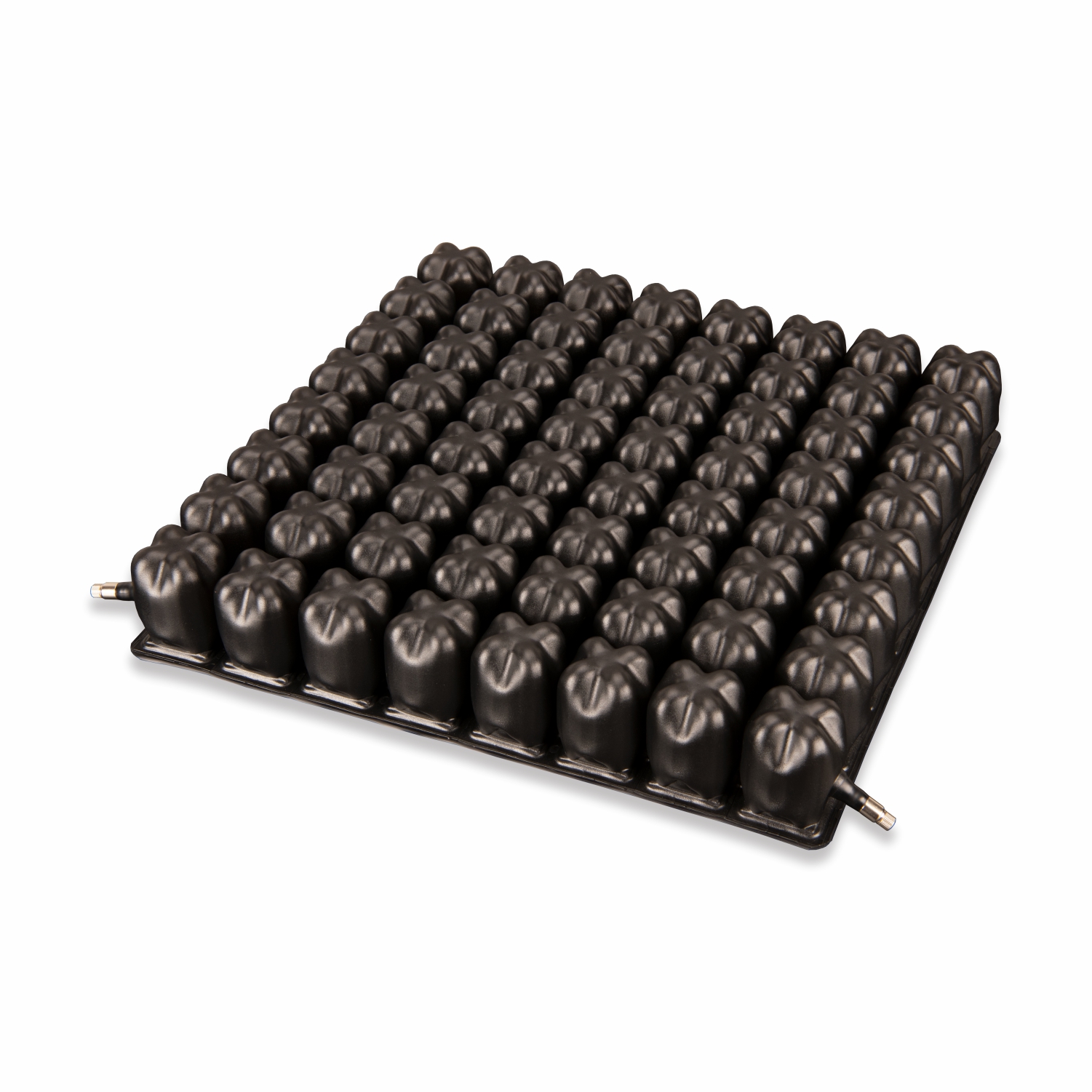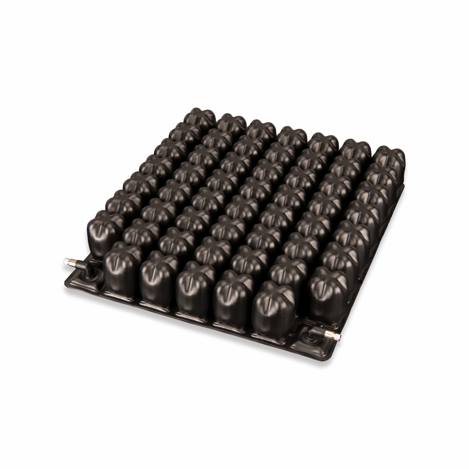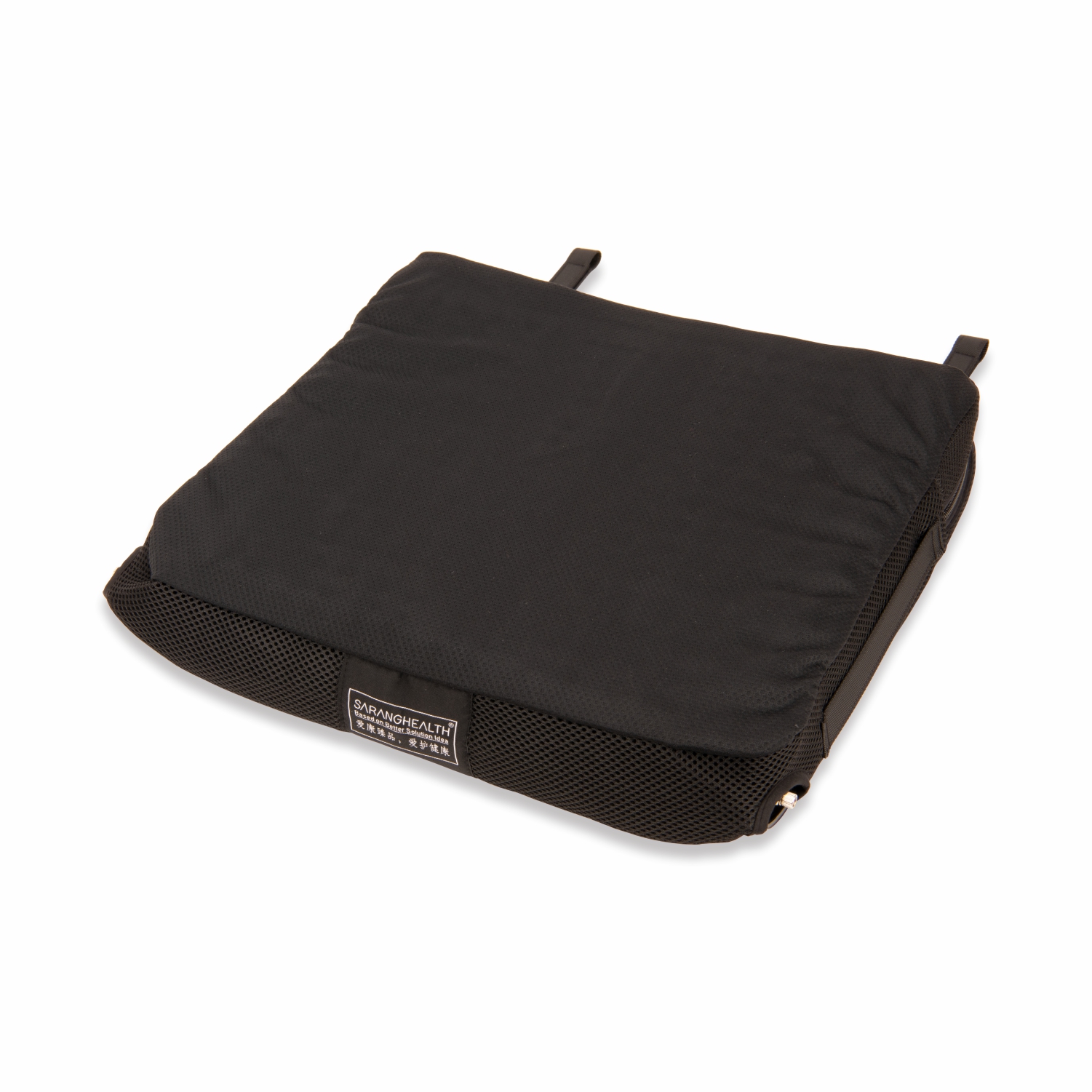 充氣坐墊采用環(huán)保PVC氣囊,內(nèi)置獨立氣囊,氣囊相互連通,易充氣和調(diào)節(jié),依據(jù)空氣流通卸壓原理,能有效預(yù)防壓瘡。左、右獨立氣室的雙氣嘴設(shè)置,不同的截癱患者左右臀部肌肉收縮程度的高低不同,可通過左、右氣嘴調(diào)節(jié)左、右獨立氣室內(nèi)的空氣量,使截癱患者得到最佳的舒適度及減壓平衡效果。坐墊套面層采用透氣滌綸面料,底部PVC防滑革,拉鏈設(shè)置易于清洗。多種尺寸、高度,適合不同輪椅使用者的需求。