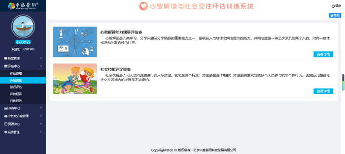 管理端可以通過心智解讀能力觀察評估表、社交技能評定量表等專業(yè)評估工具,直觀便捷檢測學(xué)生現(xiàn)有的心智解讀和社交技能發(fā)展水平,評定訓(xùn)練成效;可以創(chuàng)建屬于個體的個性化訓(xùn)練方案,包括制定訓(xùn)練的長期目標(biāo)、短期目標(biāo)、訓(xùn)練計劃、執(zhí)行訓(xùn)練任務(wù);提供相關(guān)維度的豐富資源,提供現(xiàn)有的研究成果、教案等,拓展訓(xùn)練老師和家長在相關(guān)領(lǐng)域的認(rèn)知。 學(xué)生端訓(xùn)練涵蓋共同注意、情緒解讀等七大維度,配置了視線交替、愿望等訓(xùn)練游戲