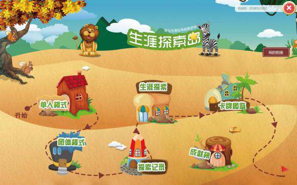 核心功能: 系統(tǒng)包括單人游戲和多人游戲模式,通過卡牌游戲的形式,根據(jù)職業(yè)興趣問題等,選擇偏向的卡片,通過統(tǒng)計數(shù)據(jù)幫助學生更好地了解自我能力、性格特點、興趣愛好和價值觀,多方面明確自我定位,找到自我發(fā)展、自我提升的方向;不僅僅是游戲,完成探索后,系統(tǒng)會生成相應(yīng)的報告,讓探索的結(jié)果一目了然;系統(tǒng)內(nèi)置豐富的案例,擴大了學生的職業(yè)類型信息儲備,增大了職業(yè)選擇面,提高了“人職匹配”程度。