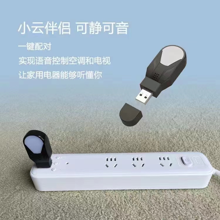替代傳統(tǒng)遙控器,語(yǔ)音調(diào)節(jié)空調(diào)、電視、風(fēng)扇等。任意USB接口即插即用,充電寶、手機(jī)轉(zhuǎn)接頭均可供電,方便視障者等隨身攜帶控制空調(diào)等家電。