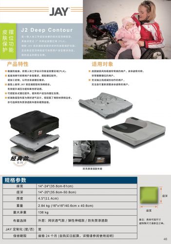 J2 Deep Contour 是一款座墊上層由液態(tài)凝膠墊和泡棉組合的減壓座墊,適合皮膚破損程度非常高的用戶,身體姿勢(shì)對(duì)稱以及非常需要擺位功能的用戶。