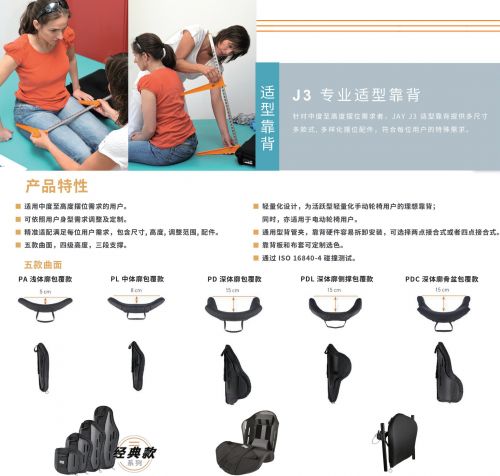 JAY J3 針對(duì)中度至高度擺位需求者,JAY J3適型靠背提供多尺寸多款式,多樣化擺位配件,符合每位用戶的特殊需求。