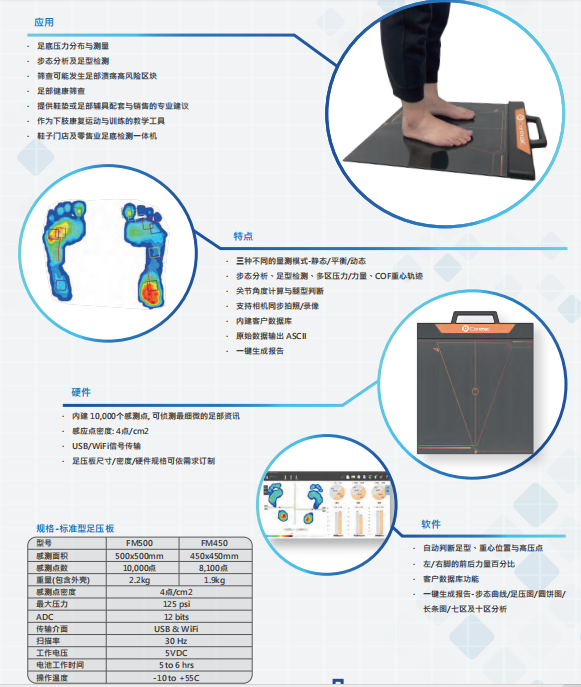 麥思科技有限公司通過(guò)積累了20多年的行業(yè)經(jīng)驗(yàn)而開(kāi)發(fā)的壓力分布測(cè)量產(chǎn)品,包含便攜式足壓板,鞋墊式足壓分析系統(tǒng)、步道式足壓分析系統(tǒng)以及人體壓力分布測(cè)量系統(tǒng),旨在面向康復(fù)醫(yī)療、康復(fù)輔具制作、體育運(yùn)動(dòng),科研等領(lǐng)域的用戶,為其提供高性能的壓力分析工具。使用場(chǎng)景包括并不局限于:康復(fù)治療前后的效果對(duì)比,為矯形鞋墊定制提數(shù)據(jù)依據(jù),運(yùn)動(dòng)員的科學(xué)訓(xùn)練輔助,運(yùn)動(dòng)生物力學(xué)的數(shù)據(jù)采集等等。