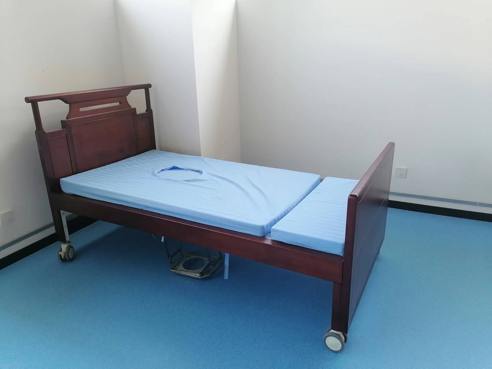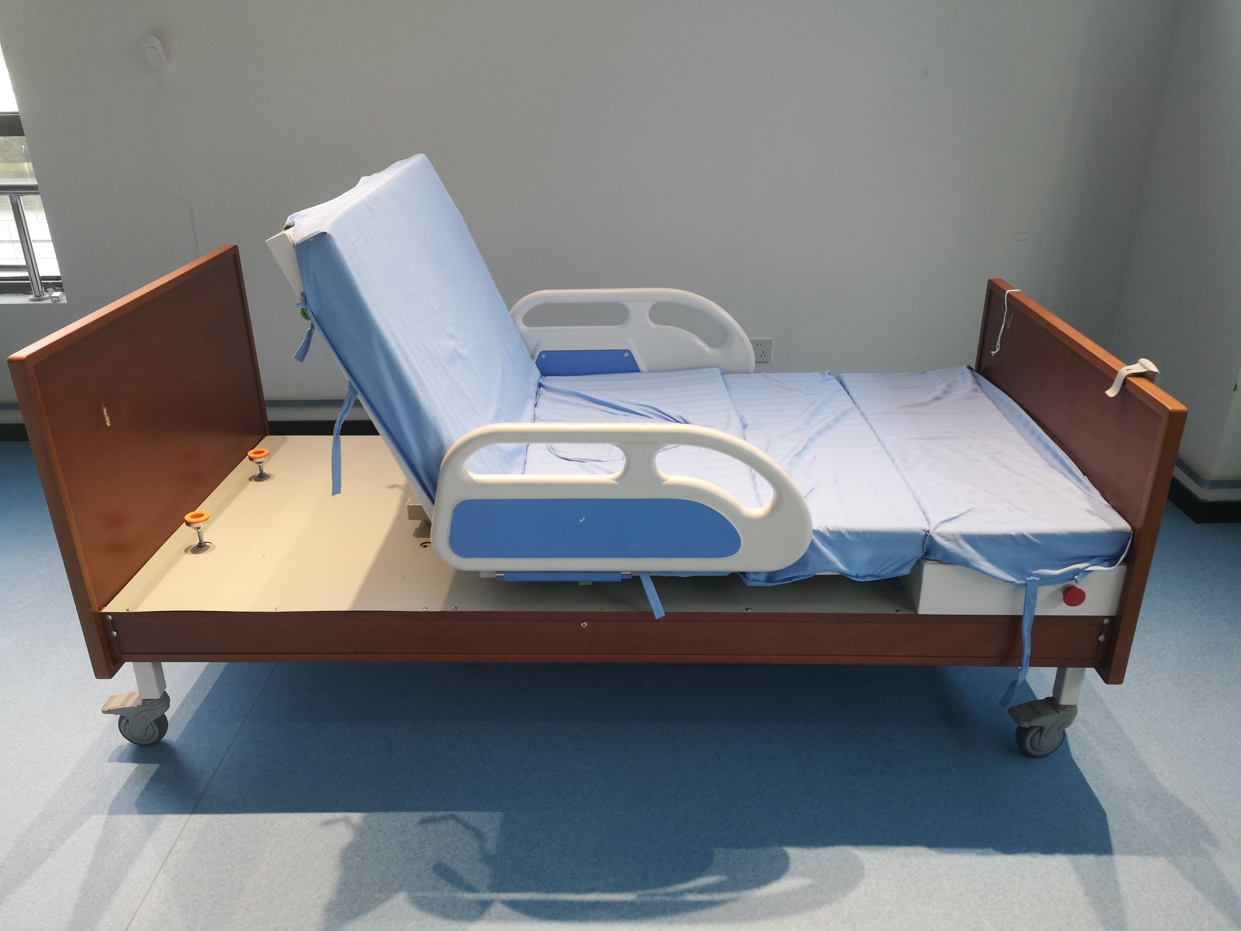 電動偏轉(zhuǎn)護(hù)理床,普通型:床長2100mmX900mm ,床面高550mm,偏轉(zhuǎn)角90度。升高型:床長2100mmX900mm,床面可升至800mm,床面升高不能偏轉(zhuǎn),降至最低點可偏轉(zhuǎn)90度。自帶可置入便盆。2、專為老人和失能人員設(shè)計,4個主要功能:1、起背;2、抬腿;3、偏轉(zhuǎn)角90度;4、床面升高。起背、抬腿幫助臥床人士移動防止褥瘡、血栓。床面升高便于醫(yī)護(hù)人員治療或陪護(hù)人員選擇操作的合適高度。