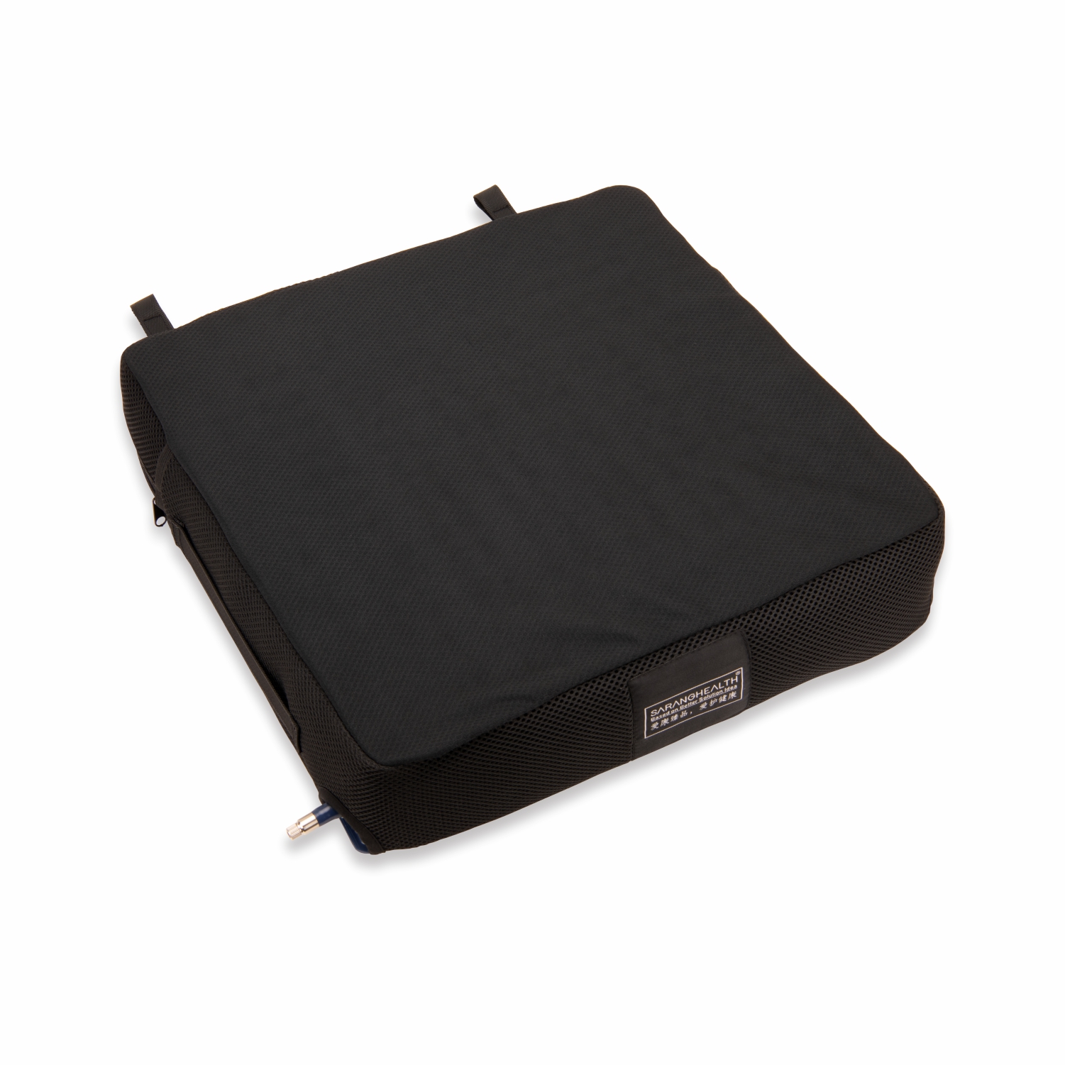 充氣坐墊采用環(huán)保PVC氣囊,內(nèi)置獨(dú)立氣囊,氣囊相互連通,易充氣和調(diào)節(jié),依據(jù)空氣流通卸壓原理,能有效預(yù)防壓瘡。左、右獨(dú)立氣室的雙氣嘴設(shè)置,不同的截癱患者左右臀部肌肉收縮程度的高低不同,可通過(guò)左、右氣嘴調(diào)節(jié)左、右獨(dú)立氣室內(nèi)的空氣量,使截癱患者得到最佳的舒適度及減壓平衡效果。坐墊套面層采用透氣滌綸面料,底部PVC防滑革,拉鏈設(shè)置易于清洗。多種尺寸、高度,適合不同輪椅使用者的需求。