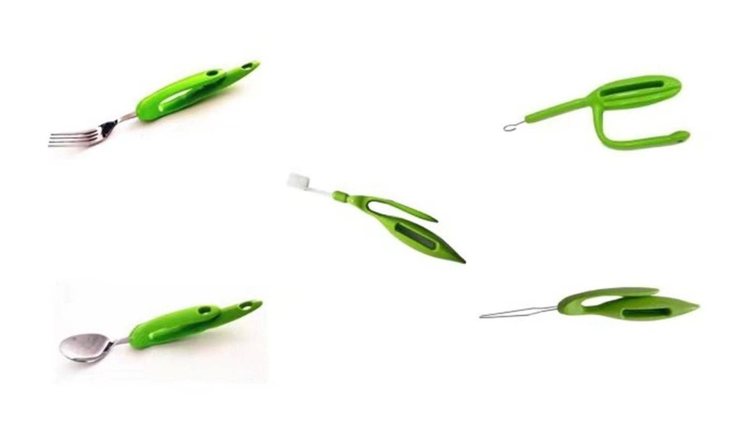 套裝由記憶成人勺子、記憶成人叉子、記憶成人牙刷、拉鏈輔助器、穿扣器5種產(chǎn)品組成。這些產(chǎn)品手柄材質(zhì)為形狀記憶聚合物,握柄可多次加熱軟化重新塑型,握柄的材質(zhì)無毒、無害、抗菌環(huán)保、易于清潔、不易退色。適用于手關(guān)節(jié)僵直、變形,身體活動(dòng)障礙人群使用。