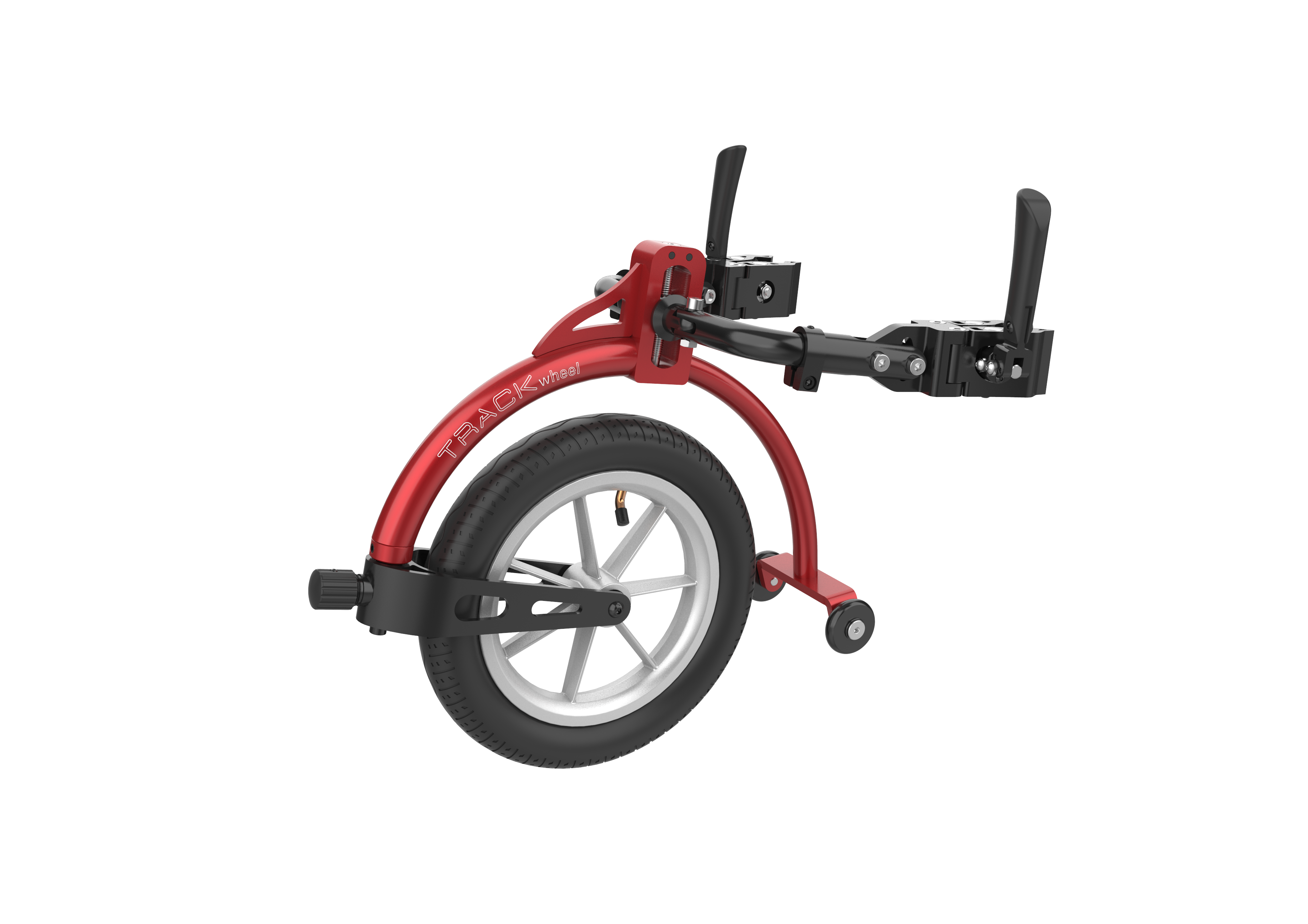 TRACK WHEEL戶外越野輪可以把您的輪椅變成可操作的三輪車,體驗(yàn)全新的速度和自由。它重量輕,易安裝,易操作,方便攜帶。 無(wú)論是城市街道,徒步路線還是粗糙崎嶇的自然小徑,Track Wheel都可以讓你行動(dòng)自如。Track wheel的工作狀態(tài)是夾住輪椅車邊框,抬高輪椅車前輪,使輪椅稍微向后傾斜,用戶通過(guò)轉(zhuǎn)動(dòng)后輪控制方向。 一旦你的Track wheel調(diào)整好,與輪椅對(duì)接只需要幾秒鐘。
