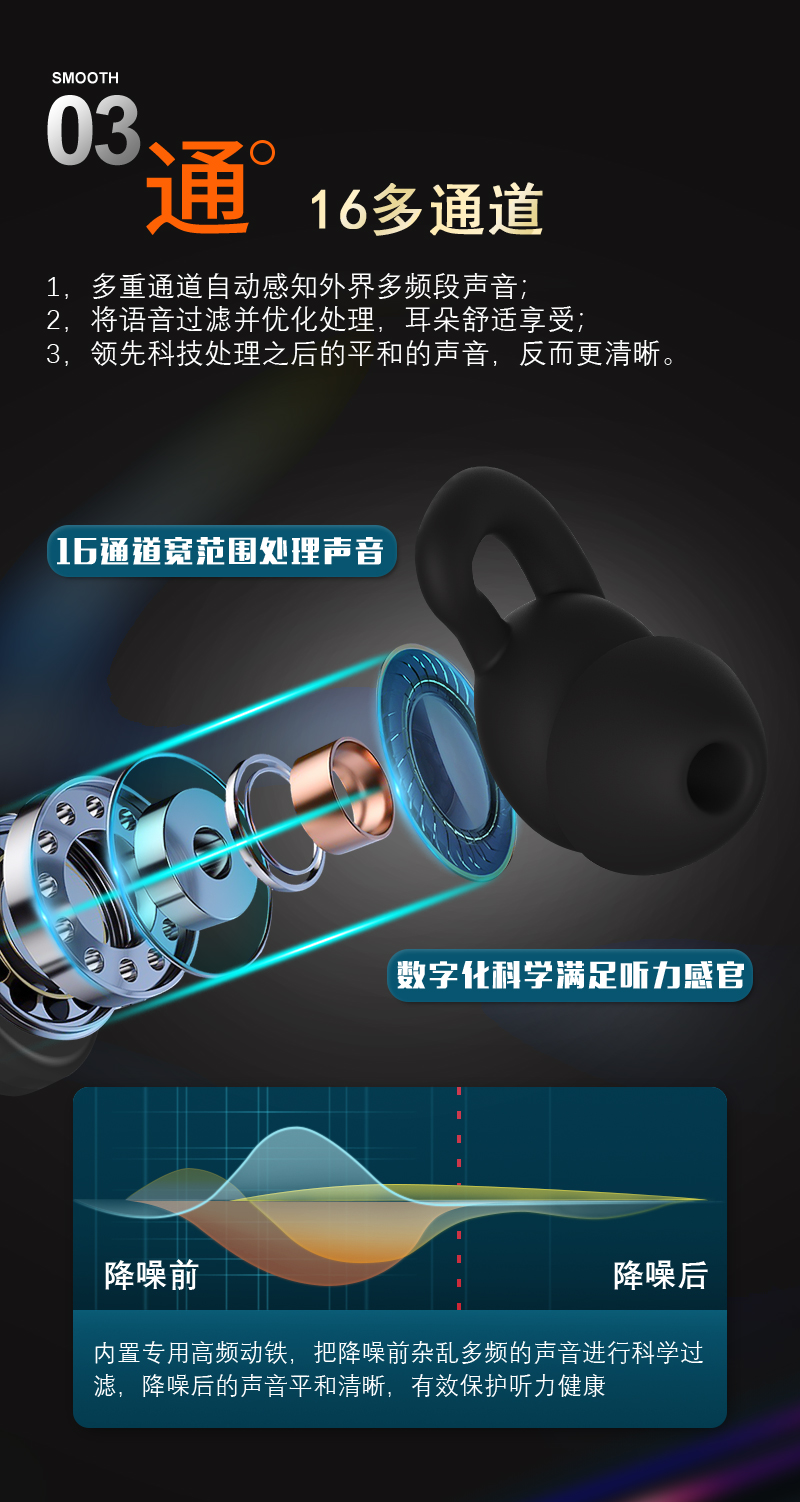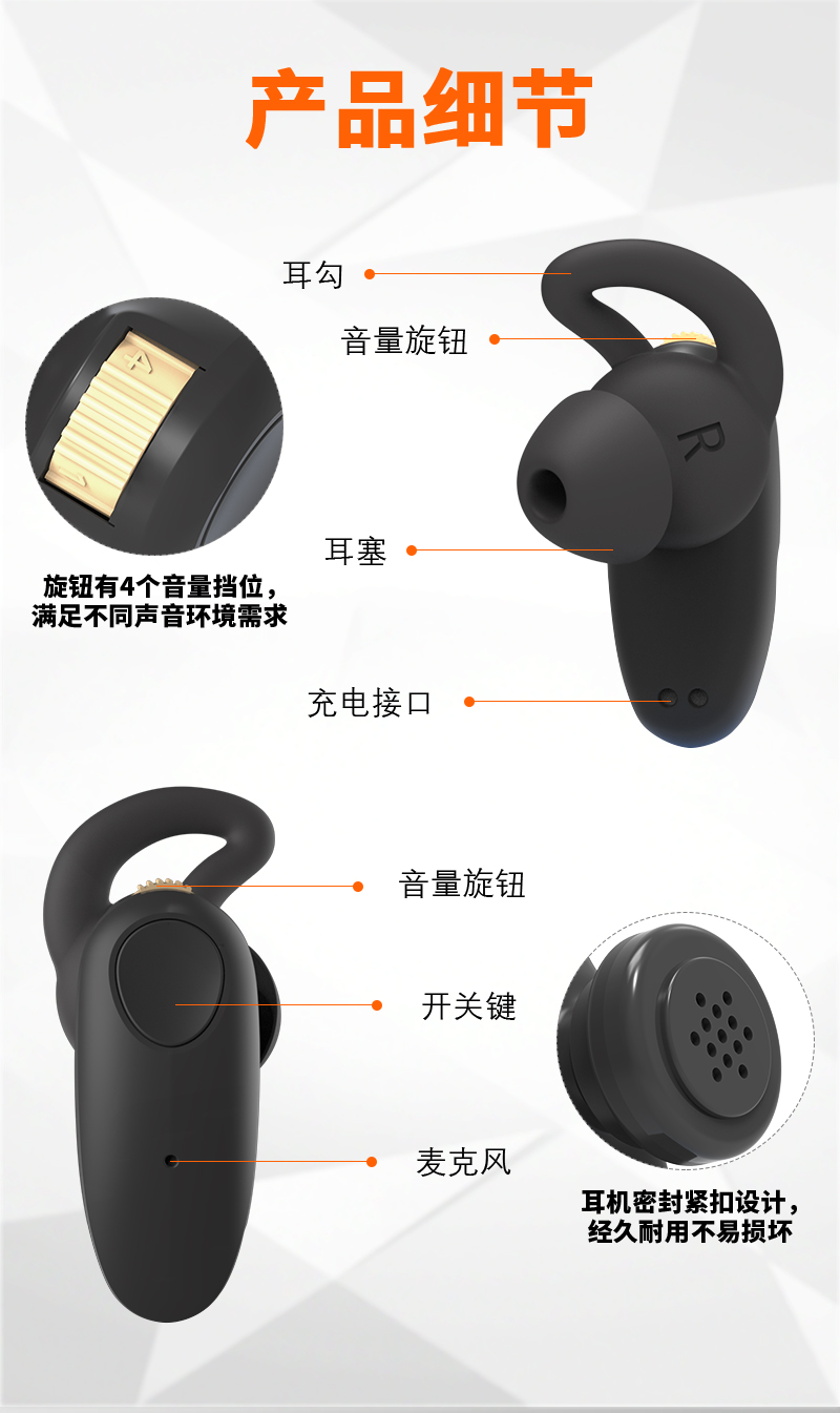 智能降噪,應(yīng)急充電,手電筒照明,音質(zhì)清晰,久戴不痛,不易掉落,持久續(xù)航,方便攜帶,可調(diào)音量,多場(chǎng)景使用