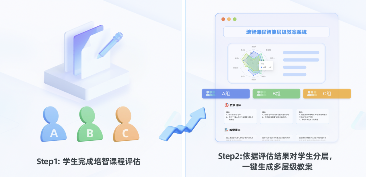 系統(tǒng)能夠依據(jù)《培智課程評估及IEP支持系統(tǒng)》中學(xué)生的評估結(jié)果進(jìn)行科學(xué)合理分層,智能生成層級教案,教案的結(jié)構(gòu)完全參照教師用書設(shè)計(jì),包含了教學(xué)目標(biāo)、重難點(diǎn)、教學(xué)準(zhǔn)備、導(dǎo)入、新課講授、課后練習(xí)和拓展小結(jié)等所有環(huán)節(jié)。并且系統(tǒng)支持教師靈活選擇不同的分層教學(xué)模式,允許個性化修改編輯,以適應(yīng)具體的課堂需求。該系統(tǒng)不僅大大提高了特教教師的備課效率,還確保了因材施教的教學(xué)質(zhì)量。
