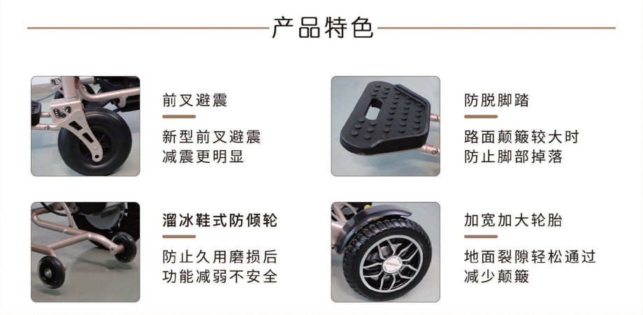 1、航空鋁合金車(chē)身,加寬輪胎,輕便又穩(wěn)固 2、全新黑科技減震設(shè)計(jì):前叉減震+大彈簧減震 3、坐姿兩檔可調(diào),有效緩解臀部壓力 4、輕松折疊,可放后備箱,可上飛機(jī)(12Ah鋰電) 5、控制器可下翻,防止搬運(yùn)觸碰 6、500瓦無(wú)刷免維護(hù)電機(jī),動(dòng)力充沛 7、液晶屏顯,高端智能,柔和起步,智能降速 8、可選配無(wú)線遙控器,遠(yuǎn)程遙控