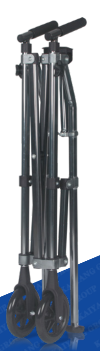 鋁合金氧化車(chē)架 一鍵折疊開(kāi)關(guān)折疊順暢輕松方便 PVC可調(diào)節(jié)伸縮高度握把 工字折疊式減少占用空間位置 車(chē)架前腳配5寸腳輪助力滑動(dòng) 后腳配高彈耐磨防滑膠腳