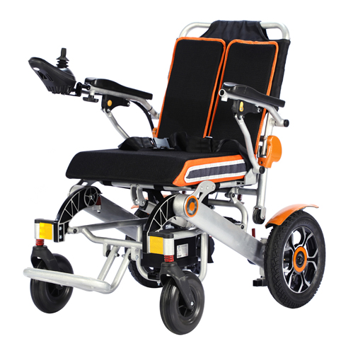 鋁合金輕便型電動輪椅,電磁剎車電機,配備12A鋰電池,藍牙操控,一鍵折疊,乘坐舒適并且輕松攜帶。