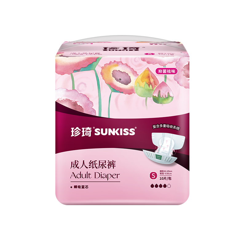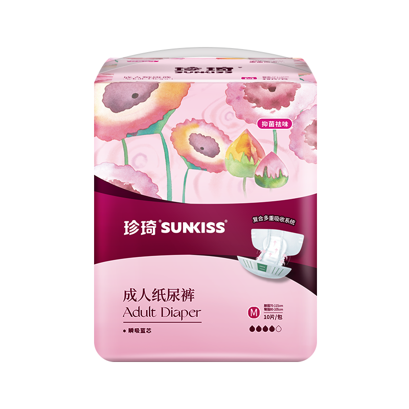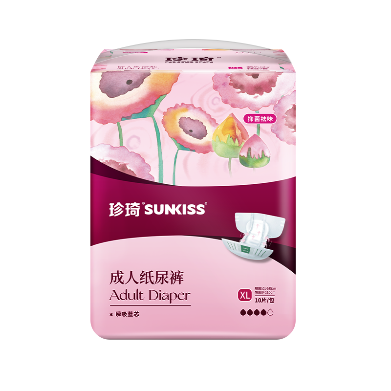 珍琦花樣倍護紙尿褲 ① 復合多重吸收系統(tǒng): 采用了“瞬吸藍芯”技術,使液體快速擴散低回滲,保持皮膚干爽舒適; ② 高效吸收芯體:進口優(yōu)質絨毛漿搭配高鎖水性SAP,雙芯速吸,更高吸收量,更強鎖水性,干爽舒適低回滲 ③ 貼身腿部橡筋:不勒肉,無來縛,加倍防側漏保護,減少打擾病者的頻次和護理人員換洗的工作量 ④防漏PE底膜:采用全新料PE膜,防潮不悶熱,柔軟不透水,有效防止液體滲漏. 適用于臥床失禁老人