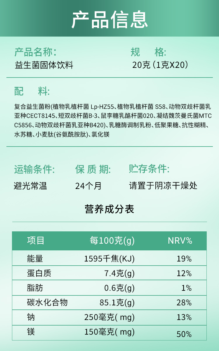 本品含七種復(fù)合專利的進(jìn)口益生菌,每盒活性菌含量達(dá)4000億CFU,高活性含量益生菌調(diào)節(jié)菌群平衡,促進(jìn)有益菌的生長(zhǎng),抑制有害菌。同時(shí),益生菌可助于對(duì)營(yíng)養(yǎng)物質(zhì)的吸收效率。