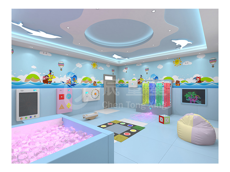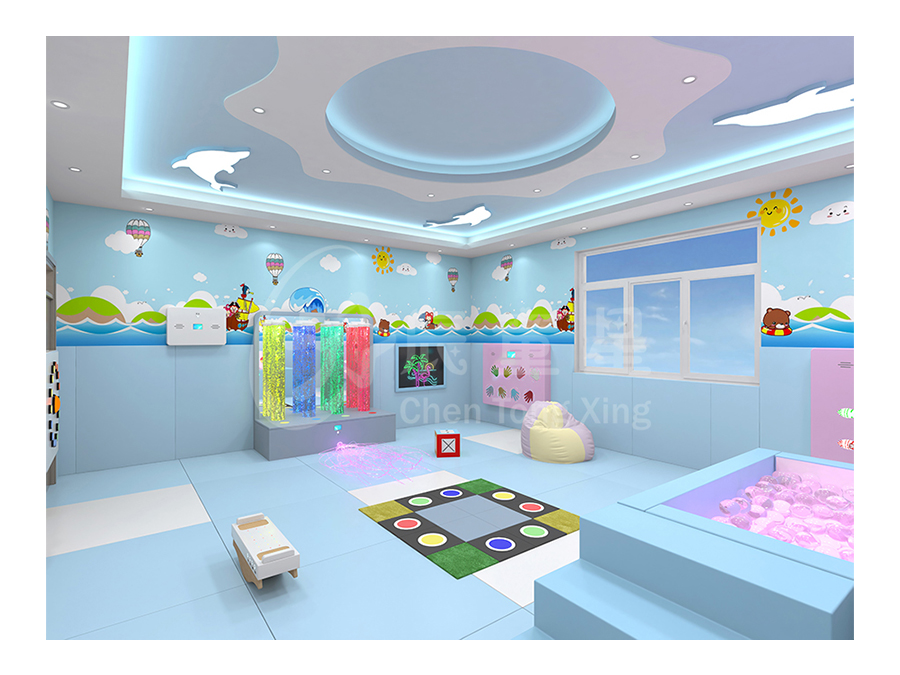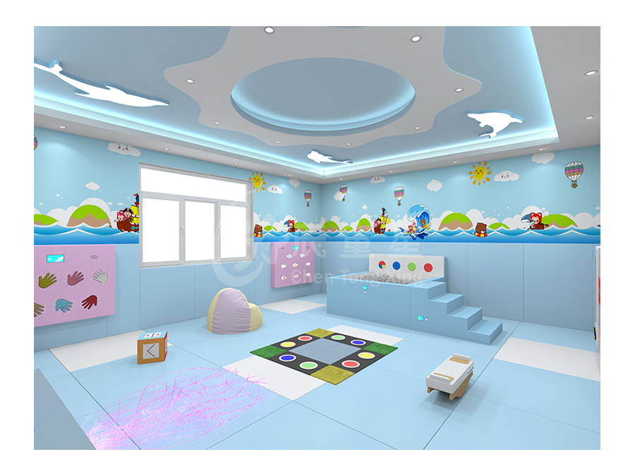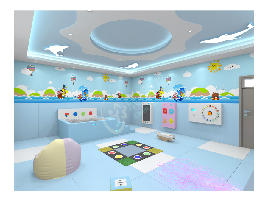 多感官訓(xùn)練室源于“史露西倫”理論,并依據(jù)神經(jīng)生理學(xué)及“蒙臺梭利感官教育”理論,強(qiáng)調(diào)給予有感官障礙和學(xué)習(xí)困難者一個悠閑、舒適、安全的空間環(huán)境,并為他們安排一個充滿感官刺激的環(huán)境,通過控制簡單的器材,使環(huán)境產(chǎn)生多種變化,并于活動中得到感官刺激經(jīng)驗。在訓(xùn)練過程中調(diào)動身體各個器官,全方位的激發(fā)興趣,全身心地為兒童服務(wù)。