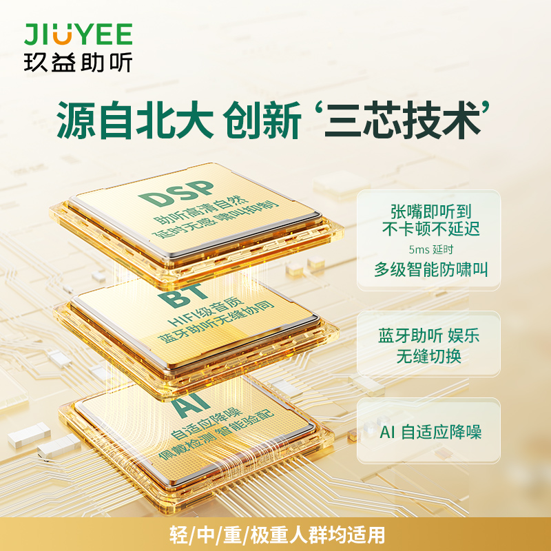 玖益醫(yī)療級智能藍牙耳背式助聽器(RIC P3 中功率) 適合中度至重度聽損,采用玖益獨創(chuàng)“三芯系統(tǒng)技術”、55dB滿檔增益,115dB最大聲壓級 ,64通道WDRC及AI降噪技術、智能驗配APP及遠程驗配、居家5-8分鐘可完成測聽和驗配,IP67防水,150小時長續(xù)航,暢享舒適溝通。
