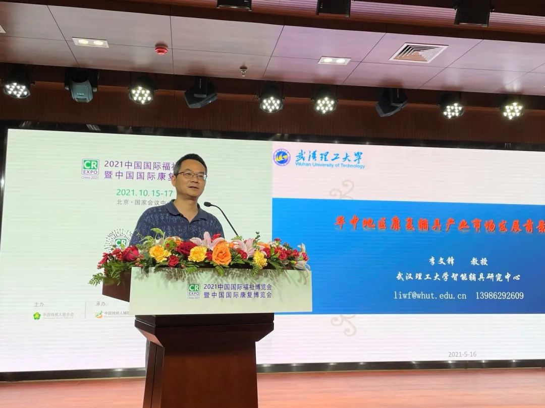 武漢理工大學(xué)智能輔具研發(fā)中心李文鋒教授作了《華中地區(qū)康復(fù)輔具產(chǎn)業(yè)市場(chǎng)發(fā)展前景》的主題分享,詳細(xì)介紹了華中地區(qū)輔具需求、政策環(huán)境、康復(fù)輔具發(fā)展優(yōu)勢(shì)以及政產(chǎn)學(xué)研資用等方面內(nèi)容。