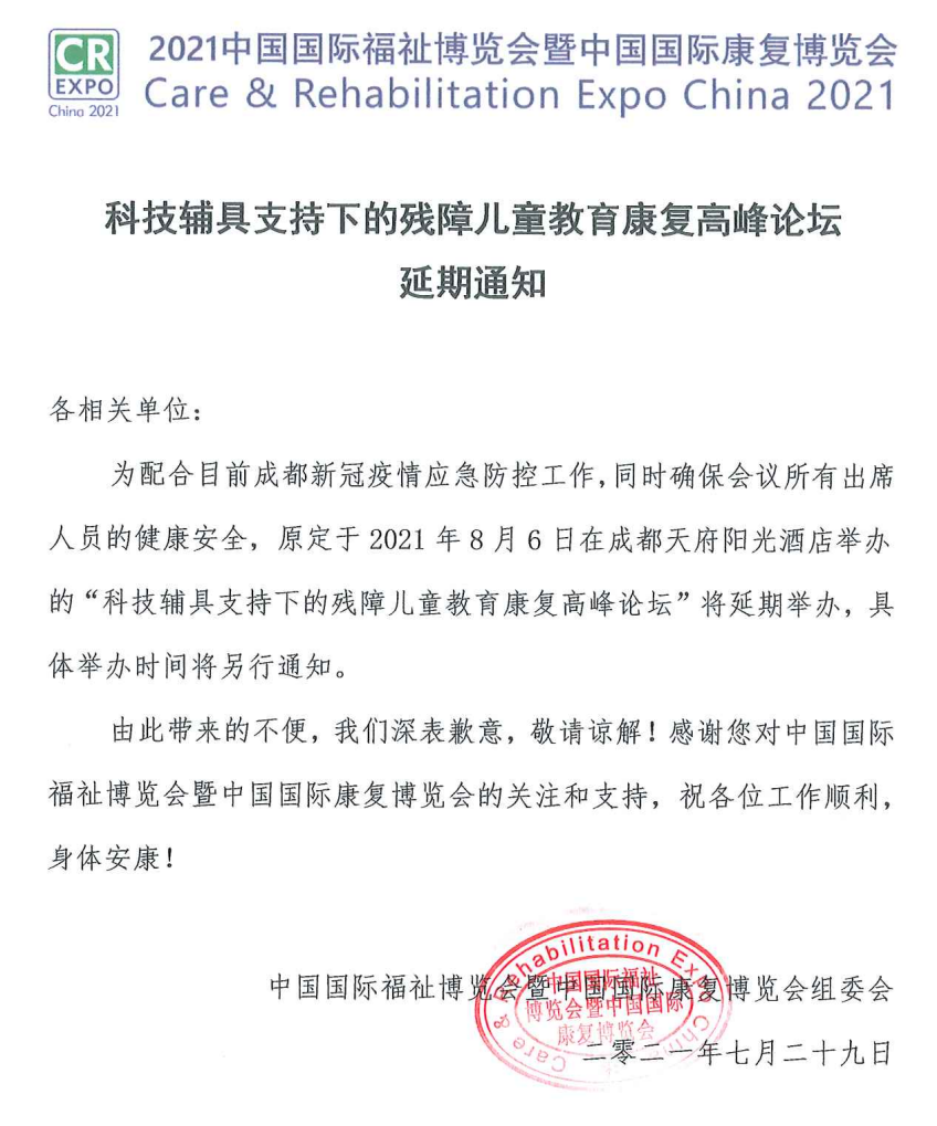 2021中國國際福祉博覽會暨中國國際康復(fù)博覽會(CR EXPO)定于2021年10月15-17日在北京國家會議中心舉辦。