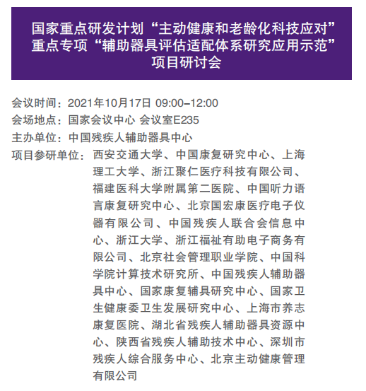 國家重點(diǎn)研發(fā)計(jì)劃“主動(dòng)健康和老齡化科技應(yīng)對(duì)”重點(diǎn)專項(xiàng)“輔助器具評(píng)估適配體系研究應(yīng)用示范”項(xiàng)目研討會(huì) |