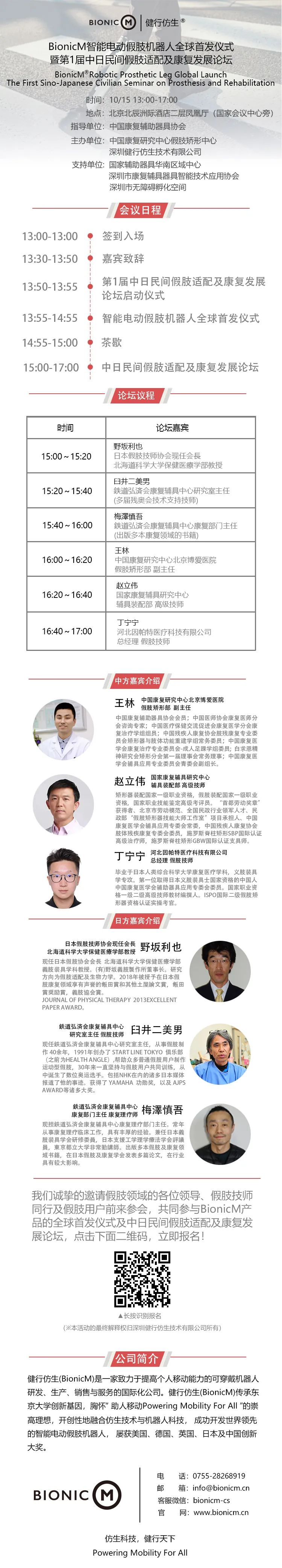 值此喜慶之際,BionicM(健行仿生)將參展2021中國(guó)國(guó)際福祉博覽會(huì),智能電動(dòng)假肢機(jī)器人全球首次正式發(fā)布,同時(shí),BionicM將與福祉博覽會(huì)同期舉辦中日第1屆民間假肢適配及康復(fù)發(fā)展論壇,通過中日兩國(guó)假肢及康復(fù)領(lǐng)域權(quán)威專家之間的對(duì)話、交流、信息共享,促進(jìn)兩個(gè)國(guó)家在假肢及康復(fù)領(lǐng)域的交流和合作。我們真誠(chéng)邀請(qǐng)您一起見證全球首發(fā)的智造之光、及首屆中日民間假肢適配與康復(fù)發(fā)展的論壇盛舉!