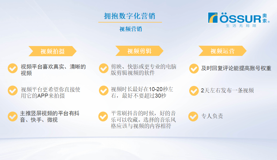 與傳統(tǒng)營(yíng)銷相比,數(shù)字化營(yíng)銷有營(yíng)銷成本低、互動(dòng)性高、精準(zhǔn)化程度高的優(yōu)點(diǎn)。奧索通過短視頻平臺(tái)(抖音、快手)進(jìn)行數(shù)字化營(yíng)銷,取得了不錯(cuò)的成果。