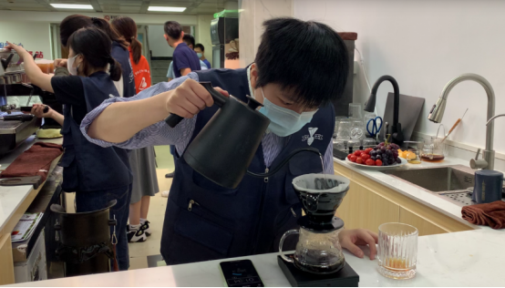 店內(nèi)餐牌、存放咖啡豆的罐子上都貼著盲文標(biāo)簽;將藍(lán)牙秤鏈接手機(jī),水量能通過(guò)語(yǔ)音播報(bào)給視障咖啡師……從研磨到萃取,視障咖啡師得以獨(dú)立出品咖啡,少不了無(wú)障礙環(huán)境和科技產(chǎn)品的支持。