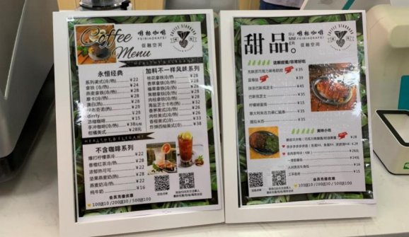 (左:盲文菜單;右:視障咖啡師正在制作咖啡)
