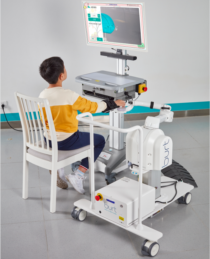 這款國(guó)產(chǎn)末端牽引式上肢康復(fù)機(jī)器人,基于神經(jīng)可塑性原理,可改善側(cè)支循環(huán),促進(jìn)病灶修復(fù)及正常組織代償作用,從而建立正確的運(yùn)動(dòng)模式。Burt上肢康復(fù)訓(xùn)練系統(tǒng)適用于肌力0-5級(jí)患者使用,多款訓(xùn)練模式結(jié)合情景游戲,增強(qiáng)患者訓(xùn)練反饋。