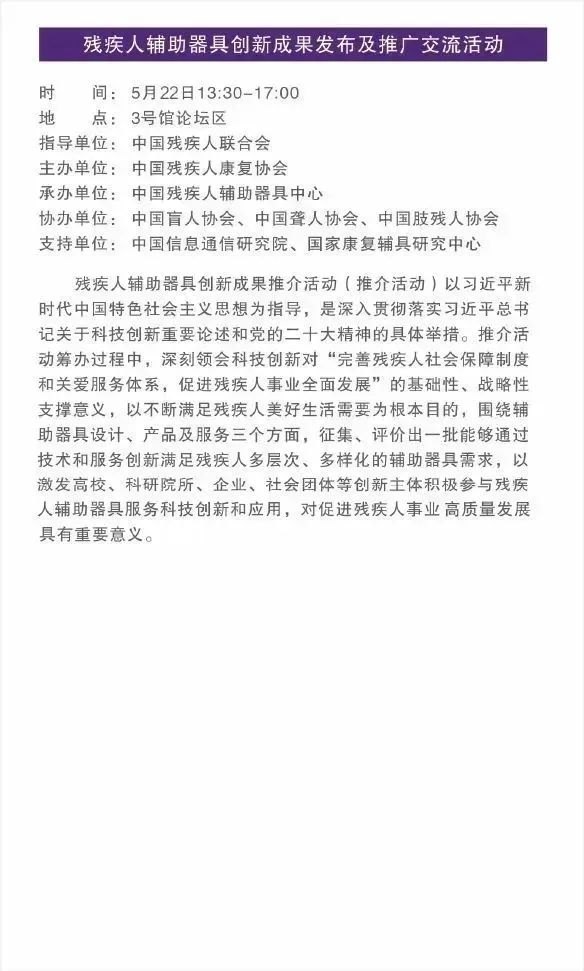 2023中國國際福祉博覽會暨中國國際康復(fù)博覽會以“面向下一個百年:創(chuàng)新賦能、合作共贏、增進福祉”為主題,將于5月21日-23日在北京首鋼會展中心舉辦。本屆福祉博覽會將集中展示殘疾人、老年人用輔助器具、康復(fù)醫(yī)療等領(lǐng)域的新產(chǎn)品、新技術(shù)、新應(yīng)用,同期舉辦30余場專業(yè)論壇、采購對接等交流活動。