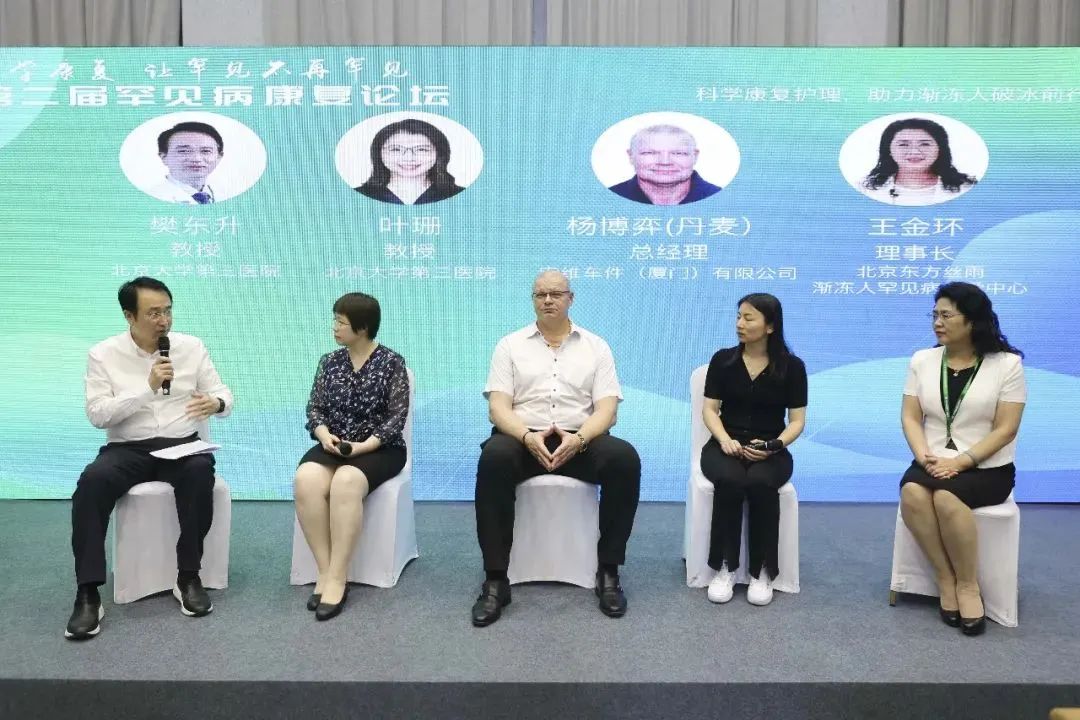 本次論壇分四個板塊,分別由北京大學(xué)第三醫(yī)院葉珊教授、安維車件(廈門)有限公司楊博弈總經(jīng)理、北京東方絲雨漸凍人罕見病關(guān)愛中心王金環(huán)理事長圍繞“科學(xué)康復(fù)護理,助力漸凍人破冰前行”;上海德達(dá)醫(yī)院簡鍇陶教授、中國醫(yī)學(xué)科學(xué)院北京協(xié)和醫(yī)院戴榮平教授、北京康心馬凡綜合征關(guān)愛中心常繼國理事長圍繞“康復(fù)前置,讓馬凡不再麻煩”;北京大學(xué)第三醫(yī)院劉小璇教授、中日友好醫(yī)院段曉慧教授、千里行CMT互助之家羅玉萍組織者圍繞“醫(yī)康融合,讓CMT獲得新生”;中國康復(fù)研究中心北京博愛醫(yī)院劉松懷教授、太陽語心理專業(yè)督導(dǎo)韓笑專家、太陽語罕見病心理關(guān)愛中心魏瑞紅理事長圍繞“心理康復(fù),撫慰罕見”等四個方面,進行了充分的論述和研討。