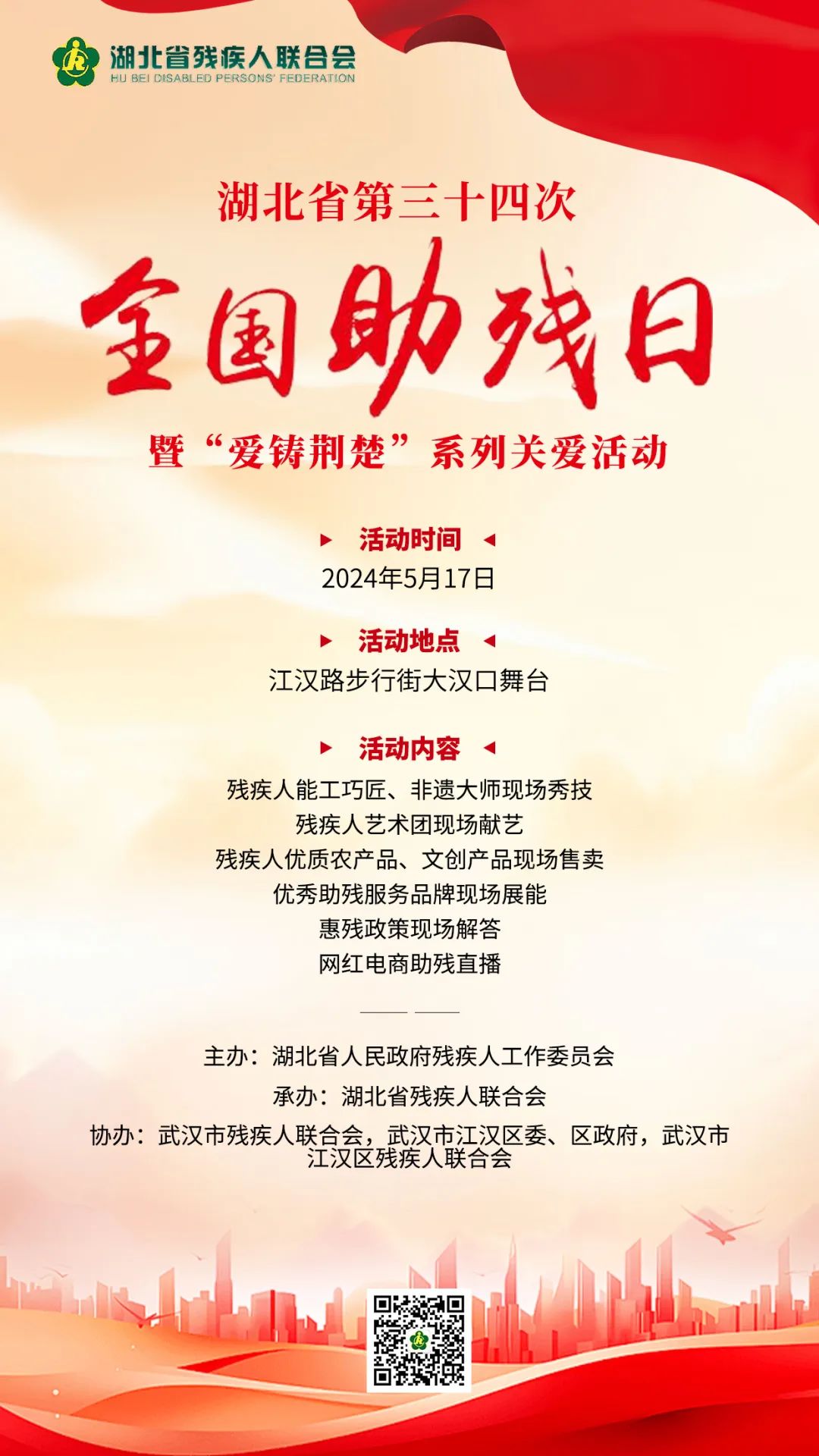 5月17日,湖北省第三十四次“全國助殘日”暨“愛鑄荊楚”系列關(guān)愛活動將在江漢路步行街大漢口舞臺溫情開啟。