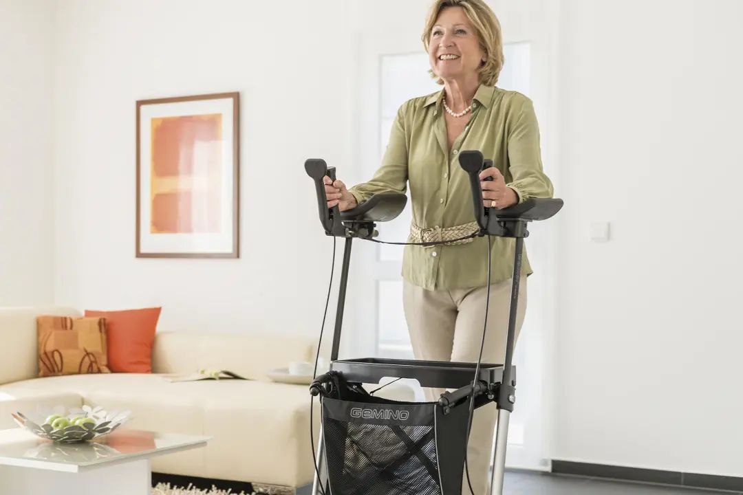 Gemino 30 walker是一款帶有前臂支撐的輕便型助步車(chē),穩(wěn)定性高。輕質(zhì)鋁合金框架結(jié)構(gòu),高質(zhì)量材料,高穩(wěn)定性,確保了在室內(nèi)外的行走體驗(yàn)。還有舒適寬大的椅面供休息。巧妙的高度可調(diào)節(jié)手把,用戶操作簡(jiǎn)便,可以自動(dòng)鎖定,符合人體工程學(xué)設(shè)計(jì),輕松調(diào)節(jié)到合適的高度。一鍵收合,僅需一步即可折疊助步車(chē),并自動(dòng)鎖定在折疊位置。夜晚外出時(shí),車(chē)身的兩側(cè)和前后的6個(gè)反光片, 可以確保在黑暗中易于被察覺(jué)。這個(gè)輕便型助步車(chē)也非常適合用于步態(tài)訓(xùn)練。