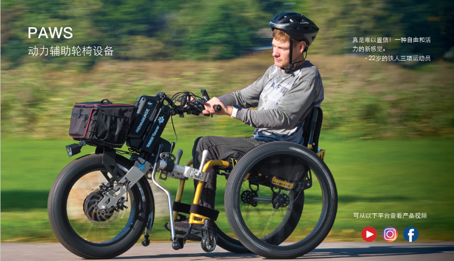 PAWS是一款全新的輪椅牽引裝置。PAWS將人機(jī)工程學(xué)與實(shí)用性功能相結(jié)合,將手動(dòng)輪椅轉(zhuǎn)變?yōu)榱钊伺d奮的電動(dòng)交通工具,讓用戶(hù)以自由的生活方式享受生活,借助它獨(dú)立地上班、購(gòu)物或進(jìn)行其他活動(dòng)。