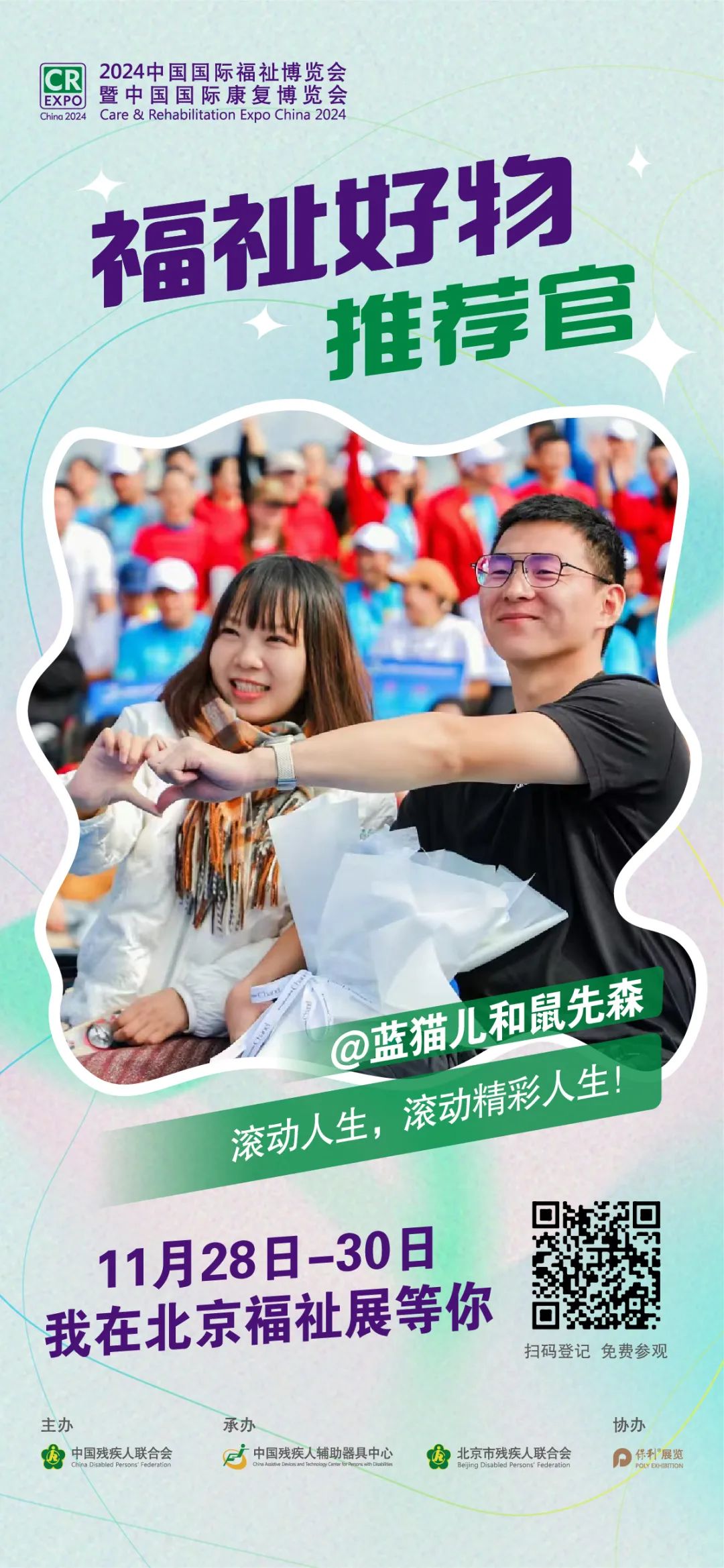 目前,北京福祉展已公布一批福祉好物推薦官,他們分別是:@藍(lán)貓兒和鼠先森、@王廣玉君、@“折翼”袁老師、@最美輪椅跑者劉峰……歡迎廣大殘友們親臨現(xiàn)場(chǎng),和他們面對(duì)面溝通,共同參與逛展直播、產(chǎn)品評(píng)測(cè)、親身體驗(yàn),為廣大殘友分享經(jīng)驗(yàn),挖掘科技品質(zhì)好物。
