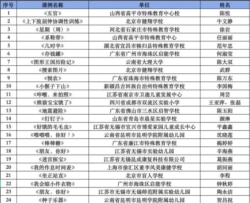 公布第一屆孤獨癥教育教學(xué)征集優(yōu)秀組織單位,優(yōu)秀、創(chuàng)新和鼓勵論文名單;公布第一屆孤獨癥教學(xué)案例優(yōu)秀組織單位,優(yōu)秀、創(chuàng)新和鼓勵課例名單
