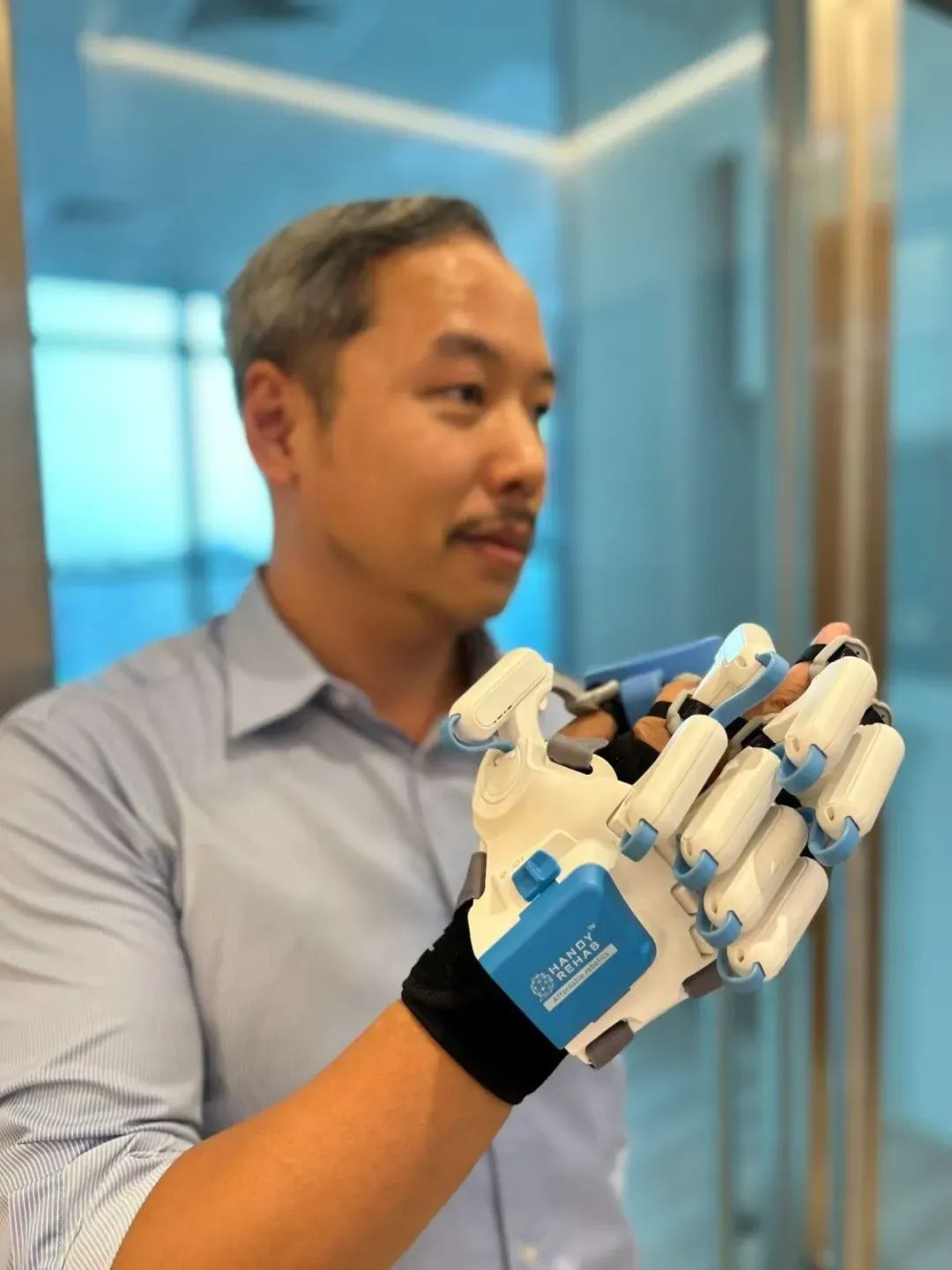 HANDYREHAB HandyGlove是一款智能機器人手套系統(tǒng),已獲得專利并經(jīng)過臨床驗證,可幫助中風(fēng)康復(fù)患者恢復(fù)高達90%的完全運動控制能力。這是一款便攜式輔助設(shè)備,能夠幫助殘疾人士完成日常任務(wù),例如拿起一杯水。